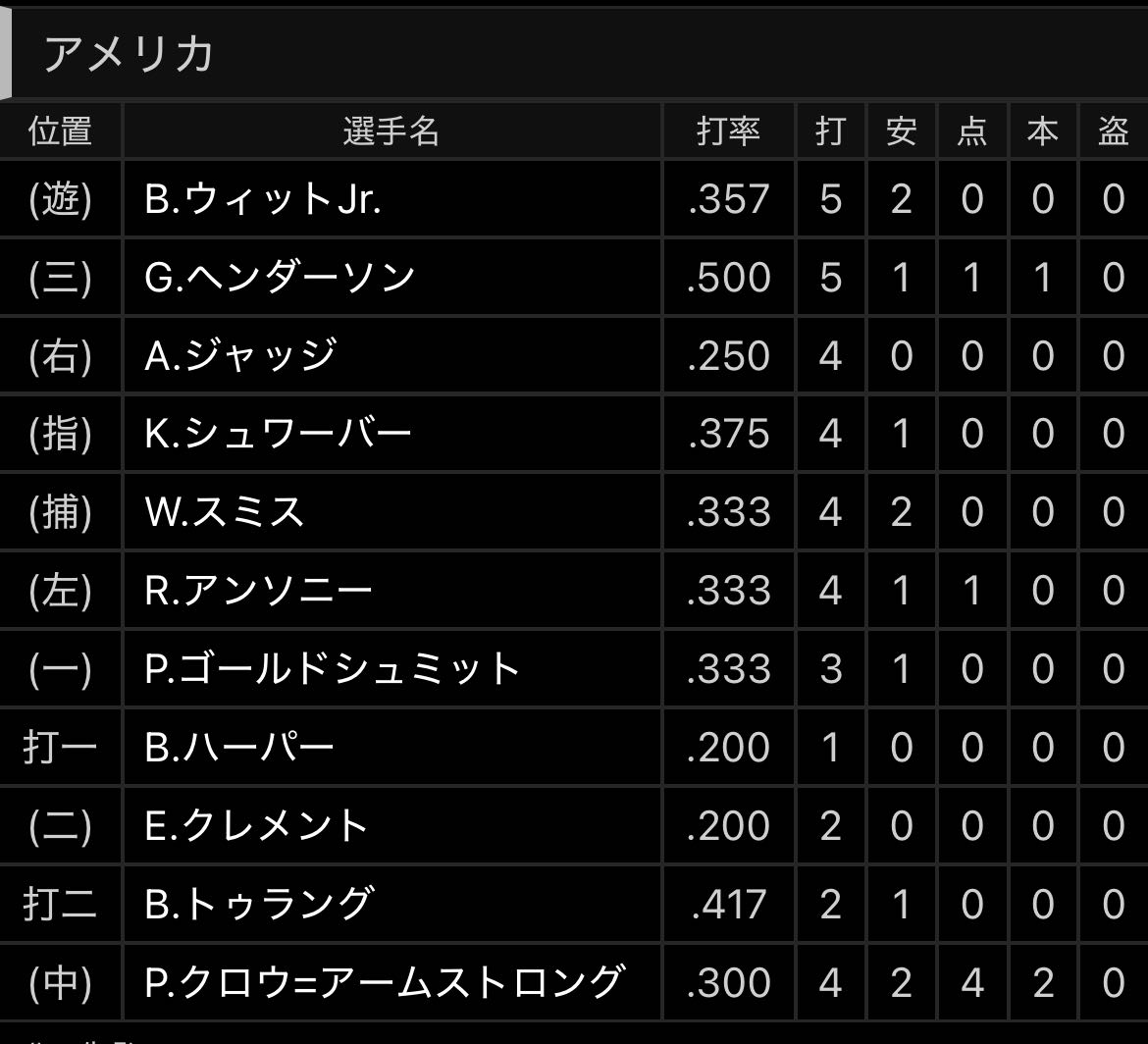 | … | 5826/03/11(水)13:19:00 ID:g03ZMChYNo.1409691506そうだねx4>9回決着として🇮🇹が4失点以内(5失点なら自責1以内)で🇲🇽が勝てば🇺🇸敗退 |