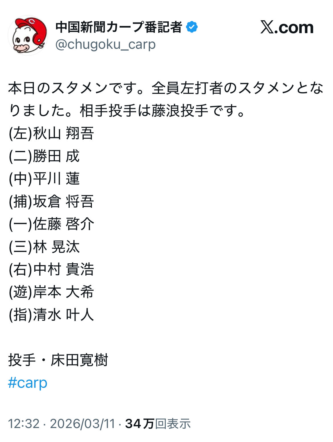 | … | 41226/03/11(水)14:31:05 ID:kHG/mnVoNo.1409707472+去年のオープン戦の🐧SHOJの成績 |