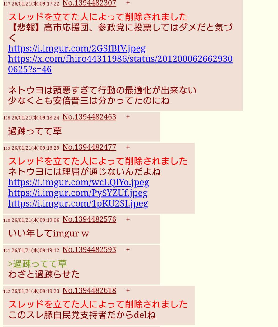 | … | 4926/03/11(水)14:50:55No.1409711581+>みんなで黙祷してなかったシャンカーなぶり殺しにしよ |