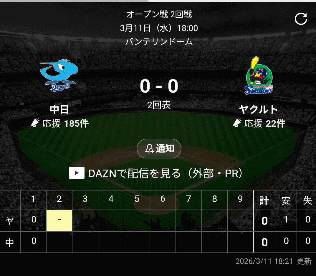 | … | 8826/03/11(水)17:50:36 ID:i/HeLwtsNo.1409752472+スタメンはほぼほぼ開幕想定のメンバーですねクォレハ |