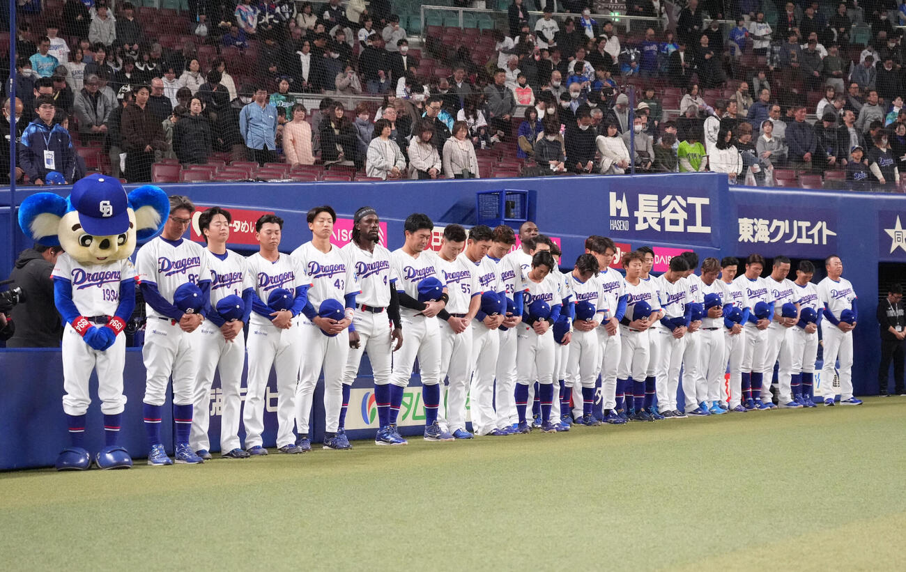 | … | 39326/03/11(水)18:46:57 ID:64OOw98oNo.1409770177そうだねx2>中日対ヤクルト 試合前、東日本大震災の犠牲になられた方々に対し哀悼の意を表し黙とうするヤクルトナイン(撮影・森本幸一) |