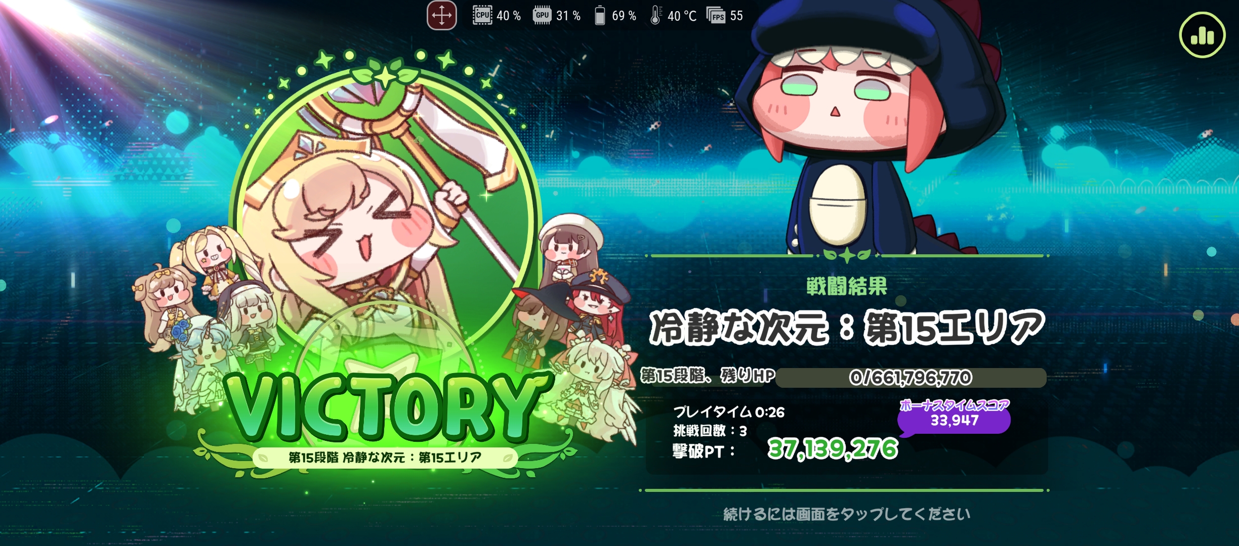 | … | 10026/03/11(水)20:01:33 ID:OTFSXSB.No.1409796847そうだねx6はぁ…はぁ…やっと次元15超えることができたにゃん…! 憂鬱パで8割5分削って冷静パでトドメ刺そうとしたらピコハンもらって中列壊滅…残り12%を純粋軸残り物チームで辛勝… 初日組なのに随分かかったにゃん fu6403031.jpg |