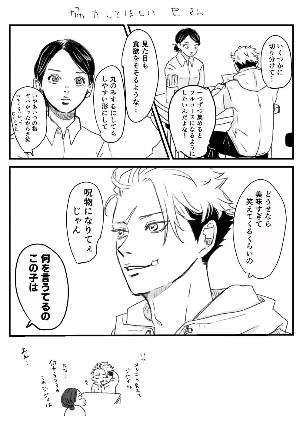 | … | 4326/03/12(木)00:07:45No.1409885251そうだねx2>口調だけ宿儺のマネをする虎杖 |