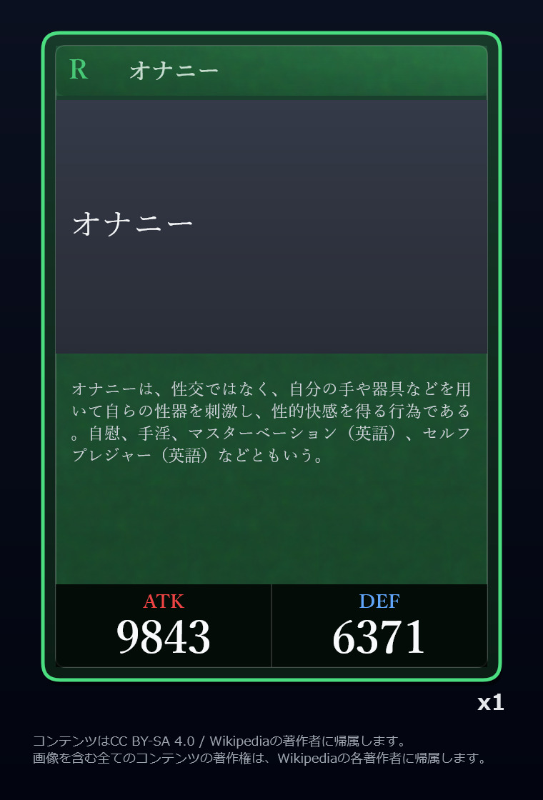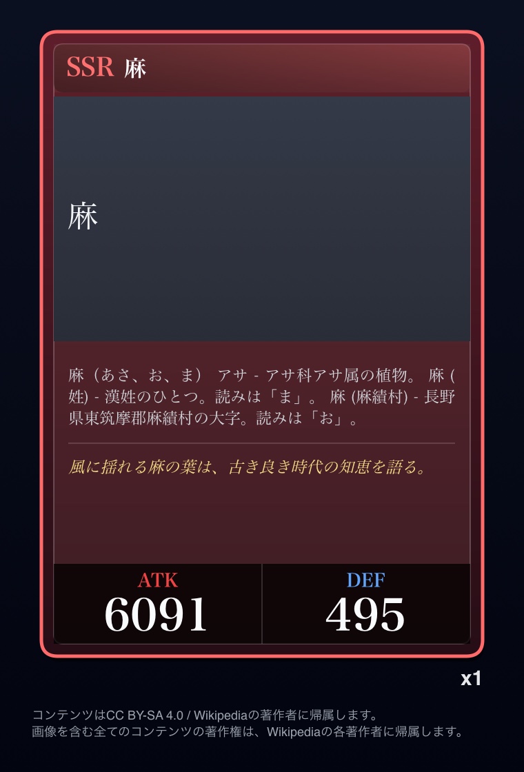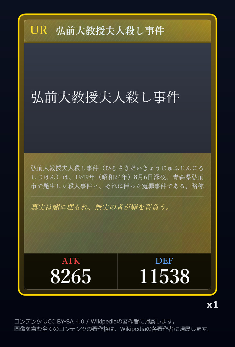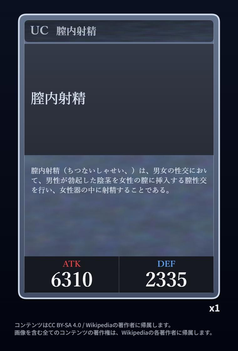| … | 826/03/12(木)00:18:26No.1409888498+Wikipediaガチャ結果: |