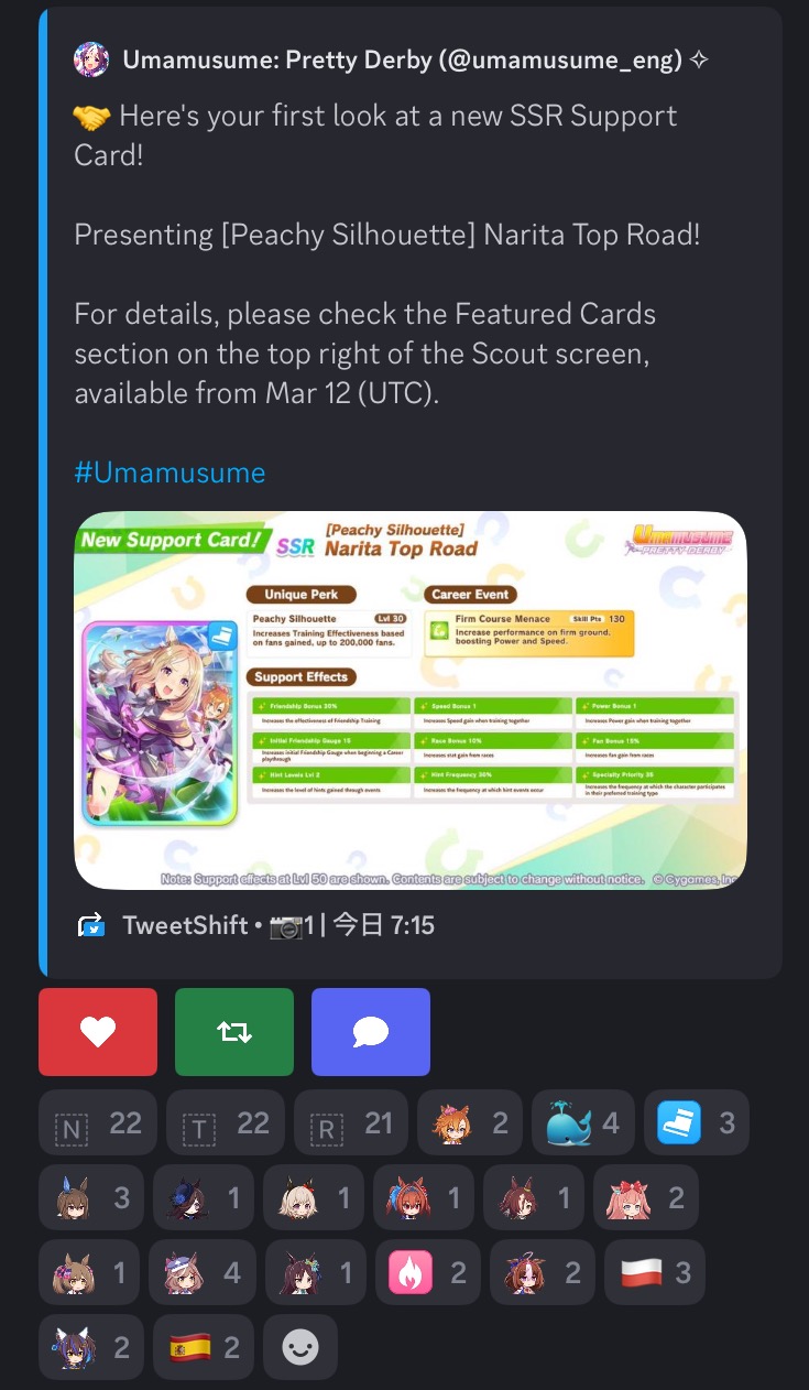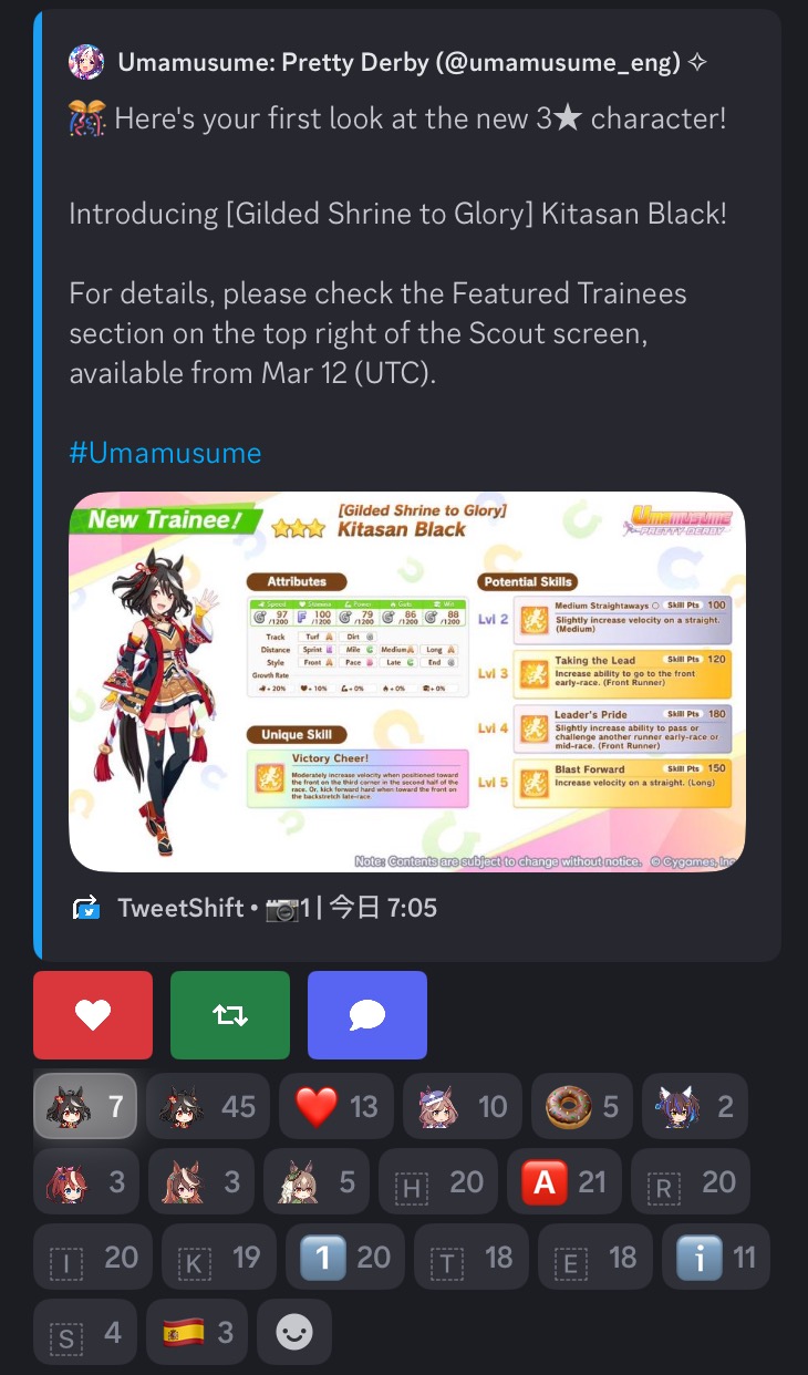 | … | 58626/03/12(木)12:01:43No.1409970054+引換券2枚で使う先として2凸になったカレンチャンさんかブルボンさん全ツか3凸ずつ |