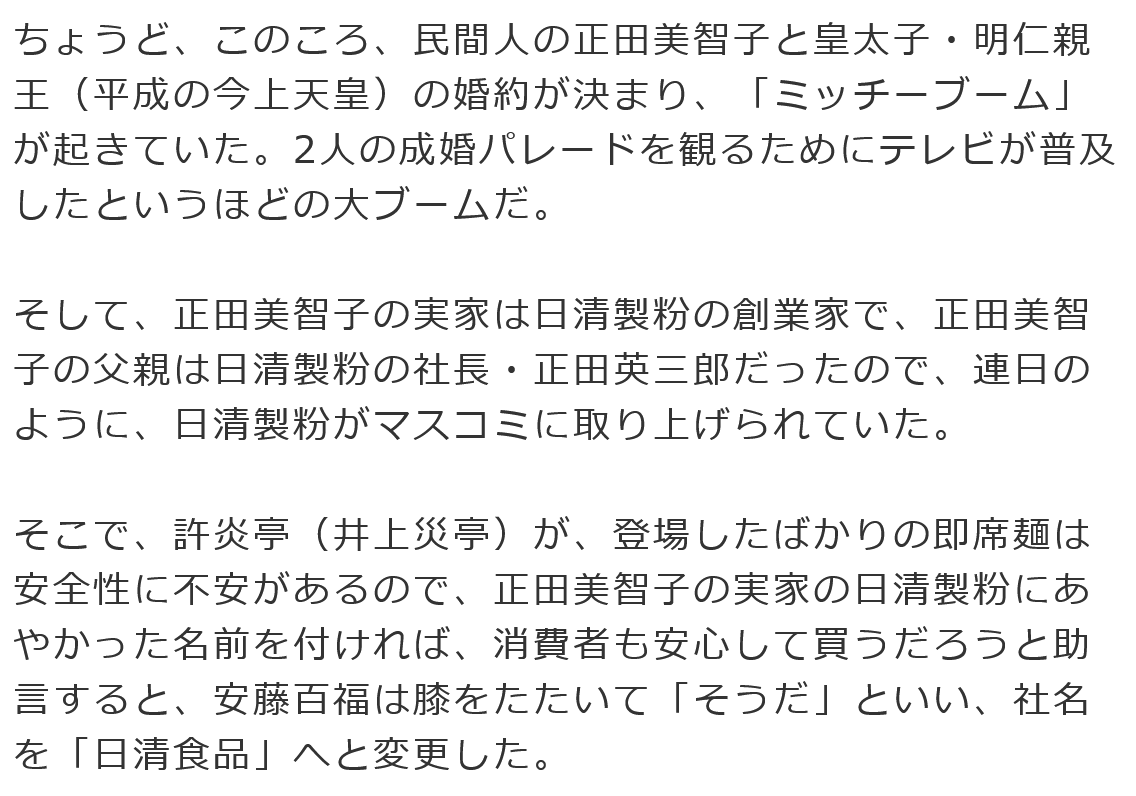 | … | 826/03/12(木)11:24:36No.1409960192+日清製粉がどうして日清って名前になったのか調べると |