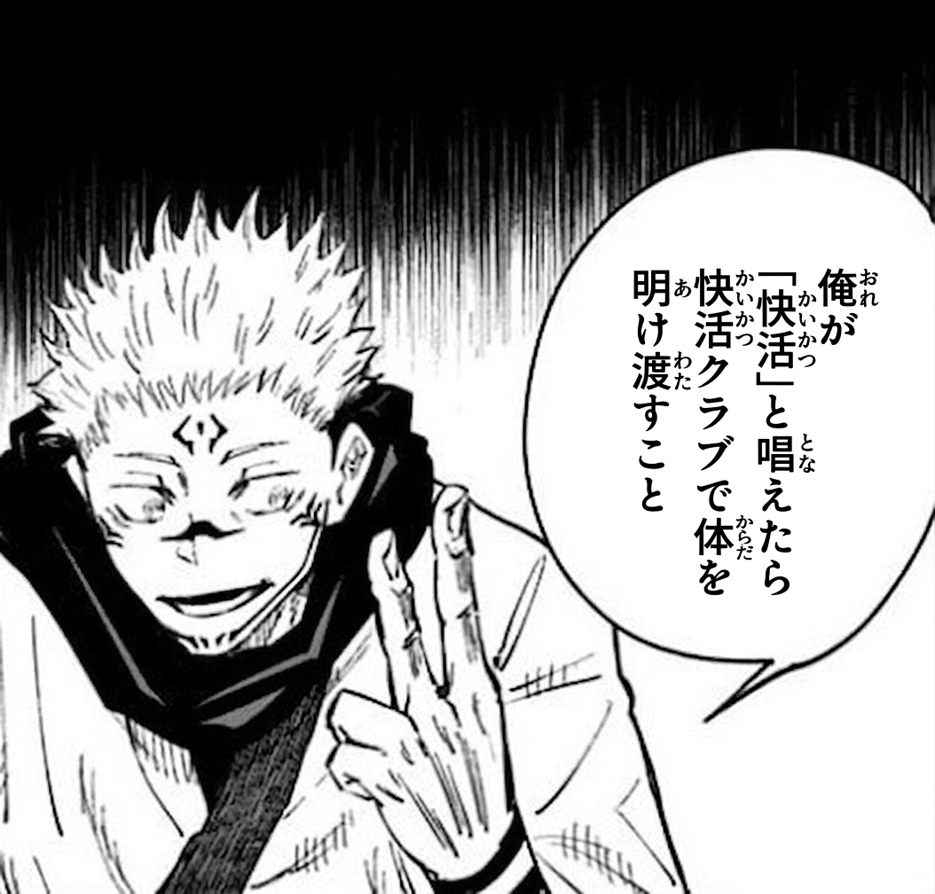 | … | 2526/03/12(木)12:33:56No.1409982479そうだねx28腕と口が常人の倍あることは快活倶楽部で過ごす宿儺にとってこれ以上ない優位性となる |