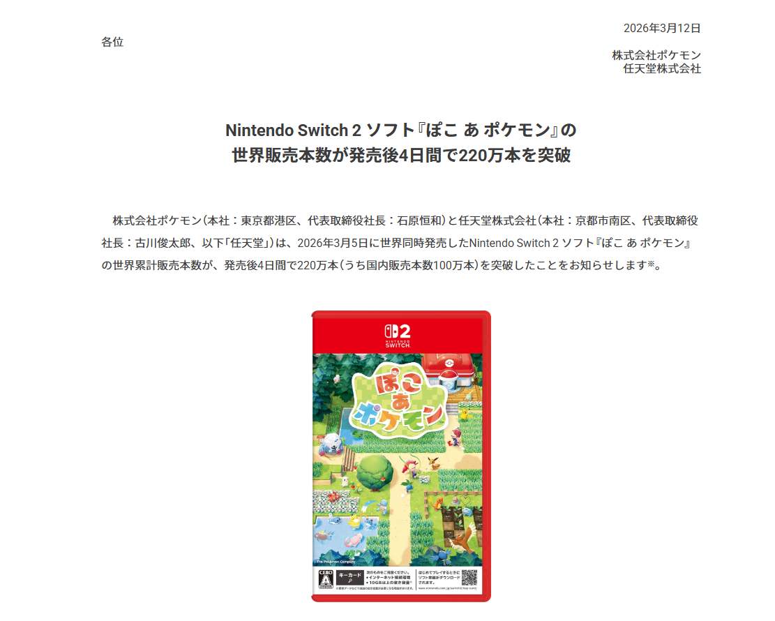 | … | 926/03/12(木)12:16:15No.1409975323そうだねx10ポケモンというのを考慮するとリリース出すほどの売上には見えない |