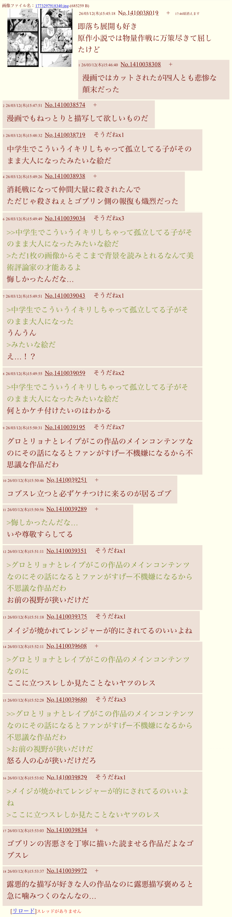 | … | 1226/03/12(木)16:31:20No.1410048627そうだねx1>スレにゴブリン沸いたらそりゃね |