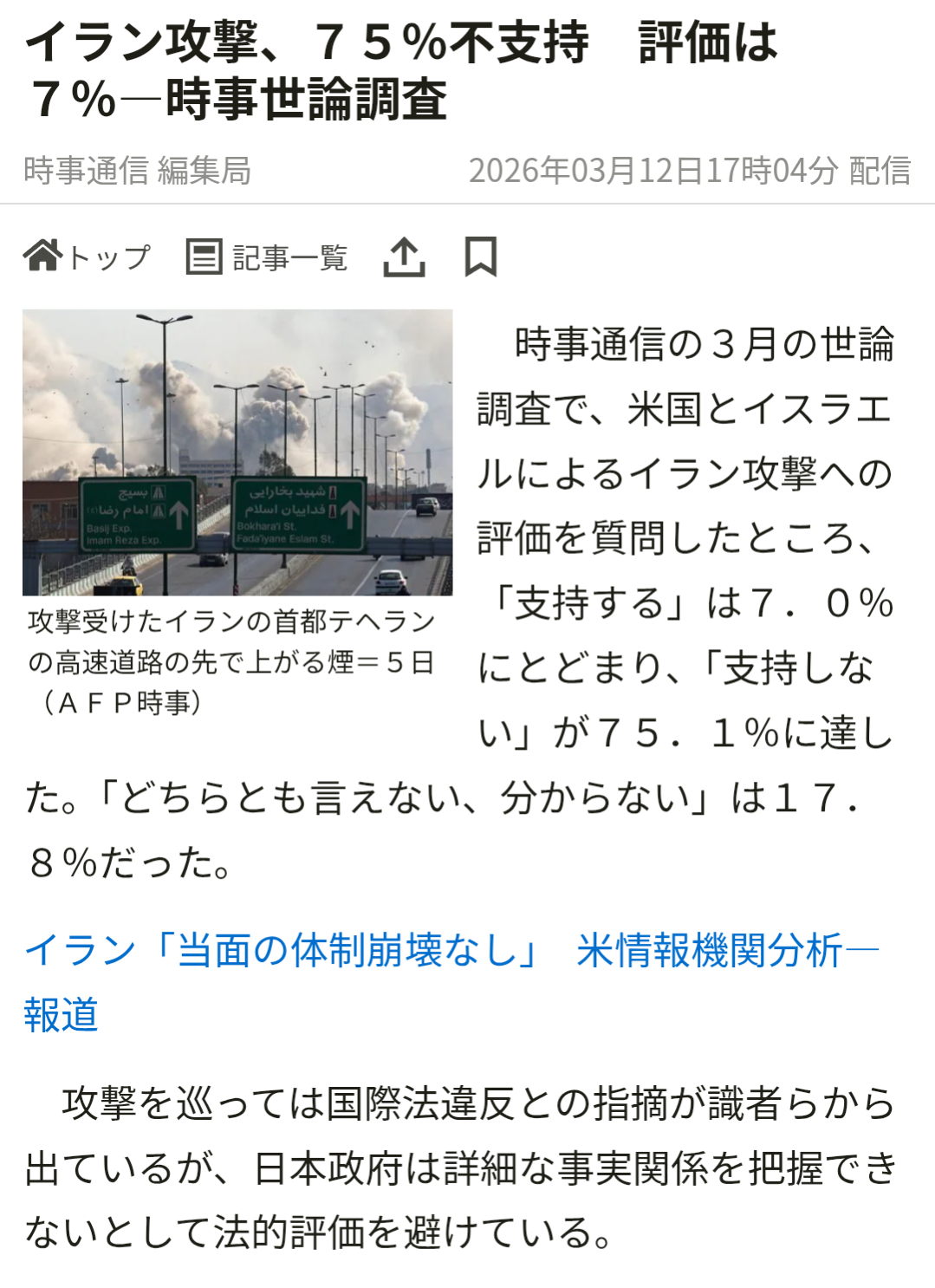 | … | 7126/03/12(木)22:03:18No.1410148010+>日本国民の7割が米国・イスラエルによるイラン攻撃を支持せず |