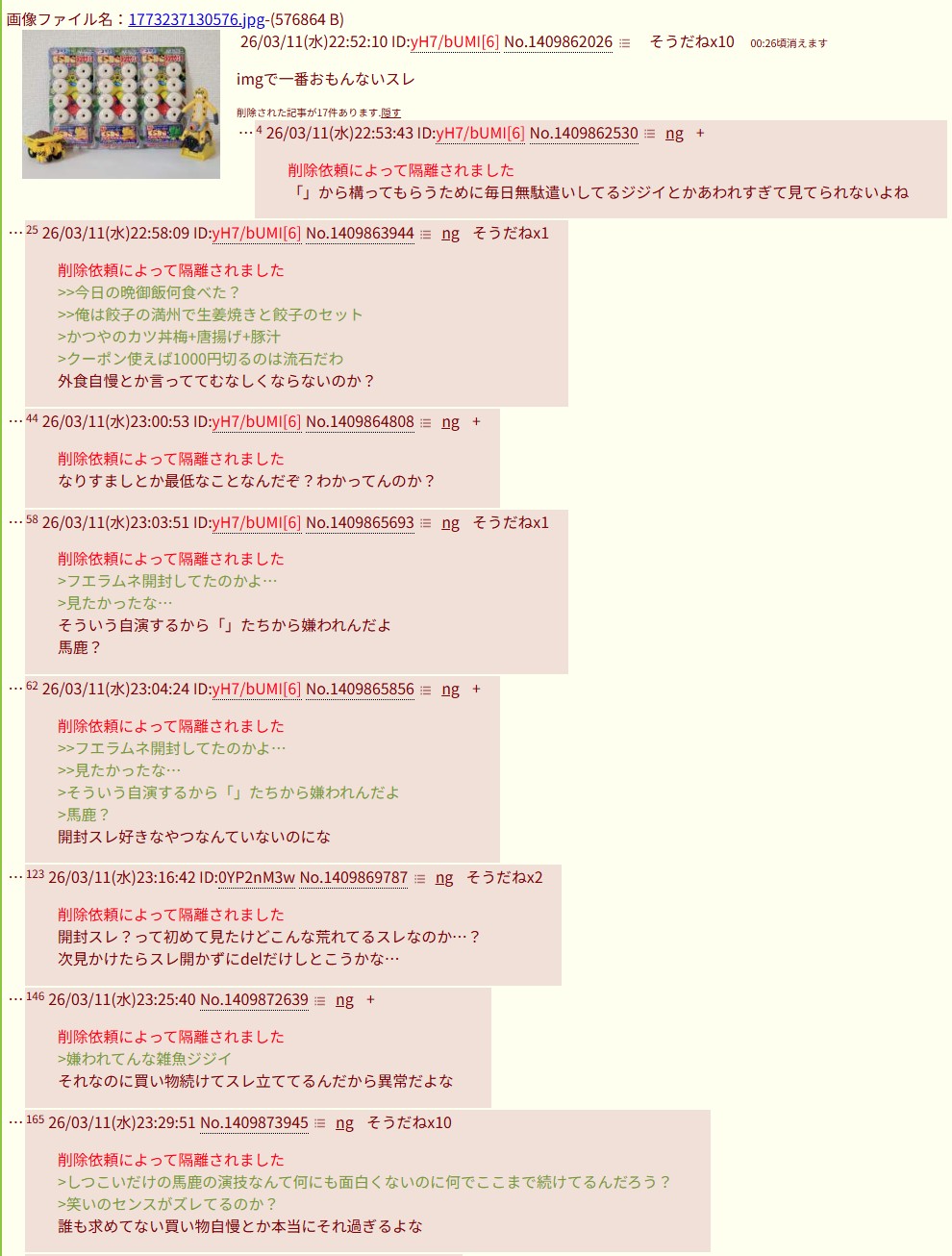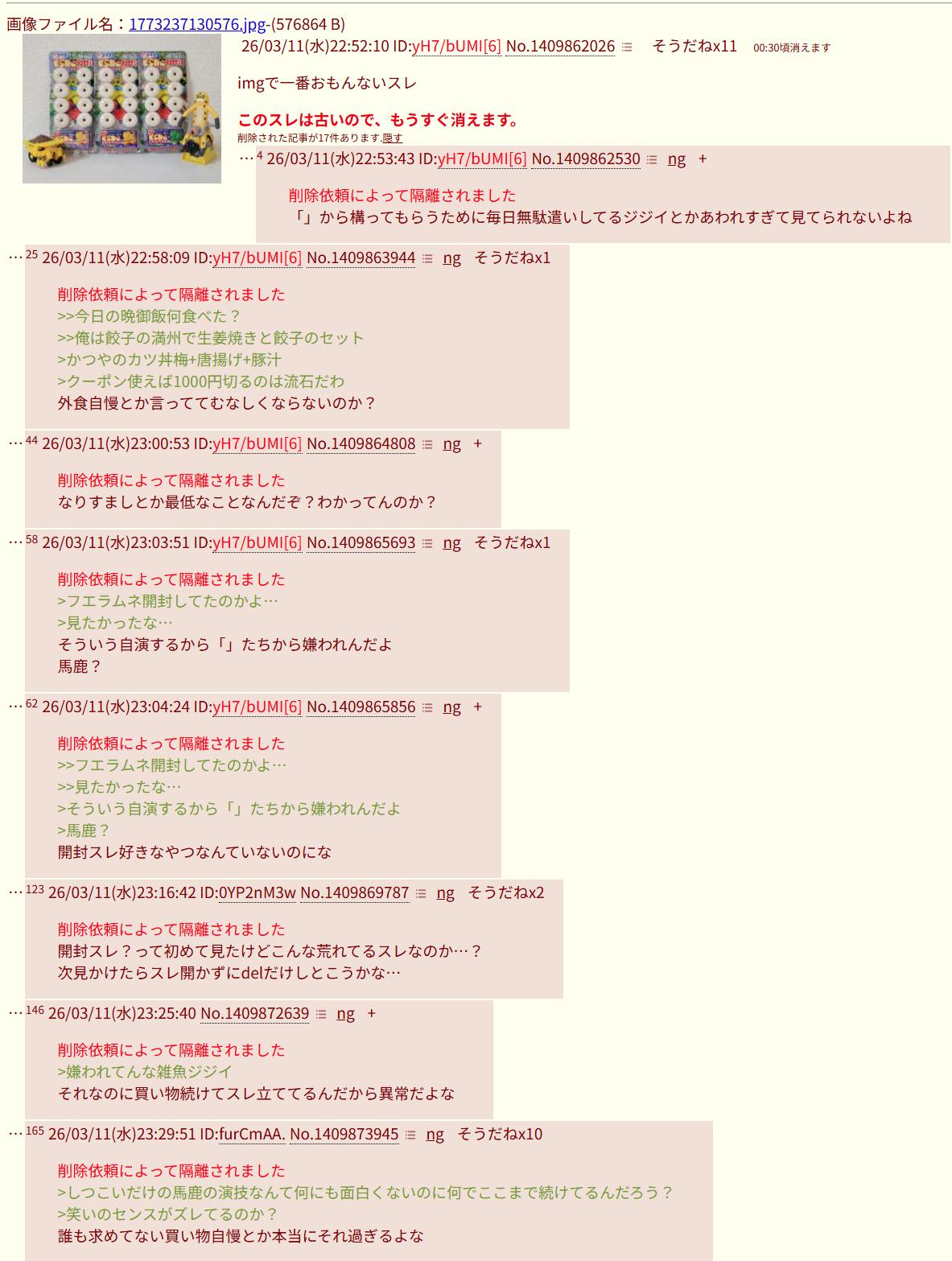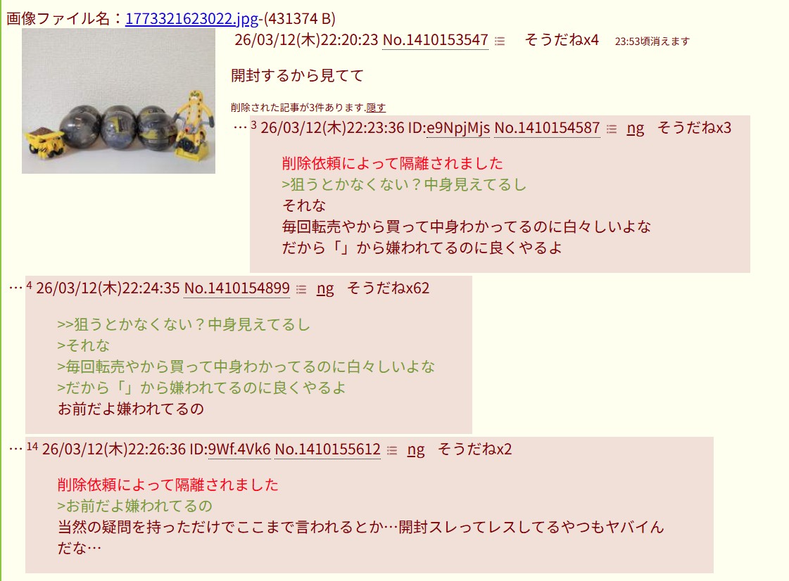 | … | 926/03/13(金)01:09:54No.1410200466+書き込みをした人によって削除されました |