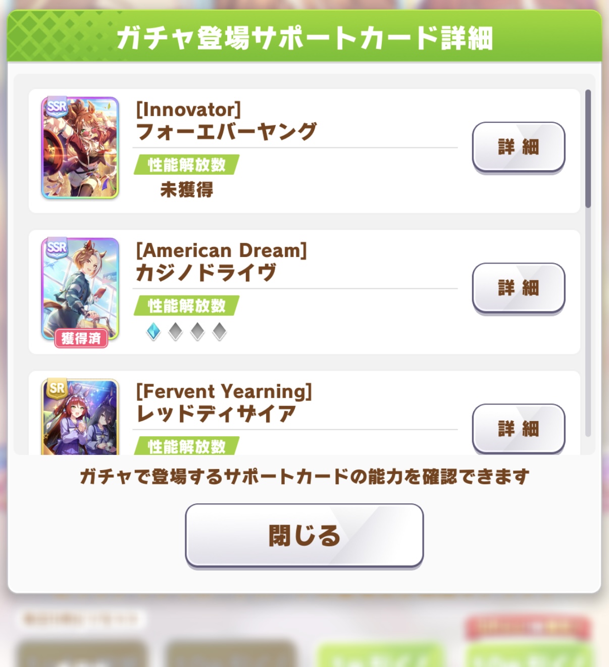 | … | 2926/03/13(金)08:46:27 ID:.evtu0OENo.1410233550そうだねx1本育成の時に選んだレースでもらえる金スキルどうしたらいいんですか!と思いましたが単純に今回のチャンミ条件と同じの選べばいいんですね女帝が前提スキル持ってきてくれますし |