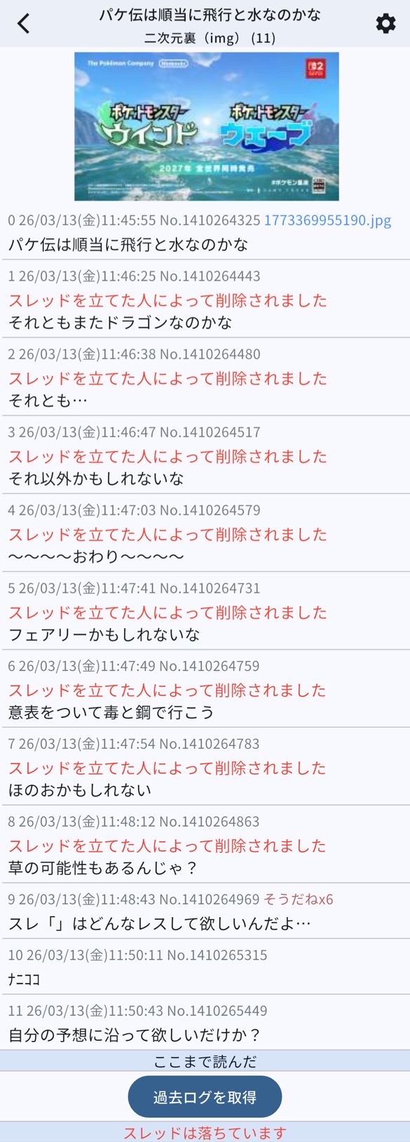 | … | 3026/03/13(金)12:15:46 ID:IUdz0B42No.1410272083+そろそろ伝説のむしポケモンが来てほしい |