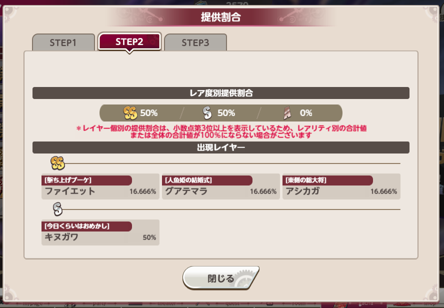 | … | 9426/03/13(金)18:33:12No.1410356957+55連より任意のSSR1人もらえるほうが嬉しいねぇ… |