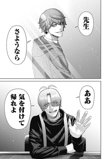 | … | 5626/03/13(金)20:06:39No.1410389953+>神とのタッグのはずなのに何故か獅子神さんと医者の関係性で読者の酸素が足りなくなってるの笑った |
