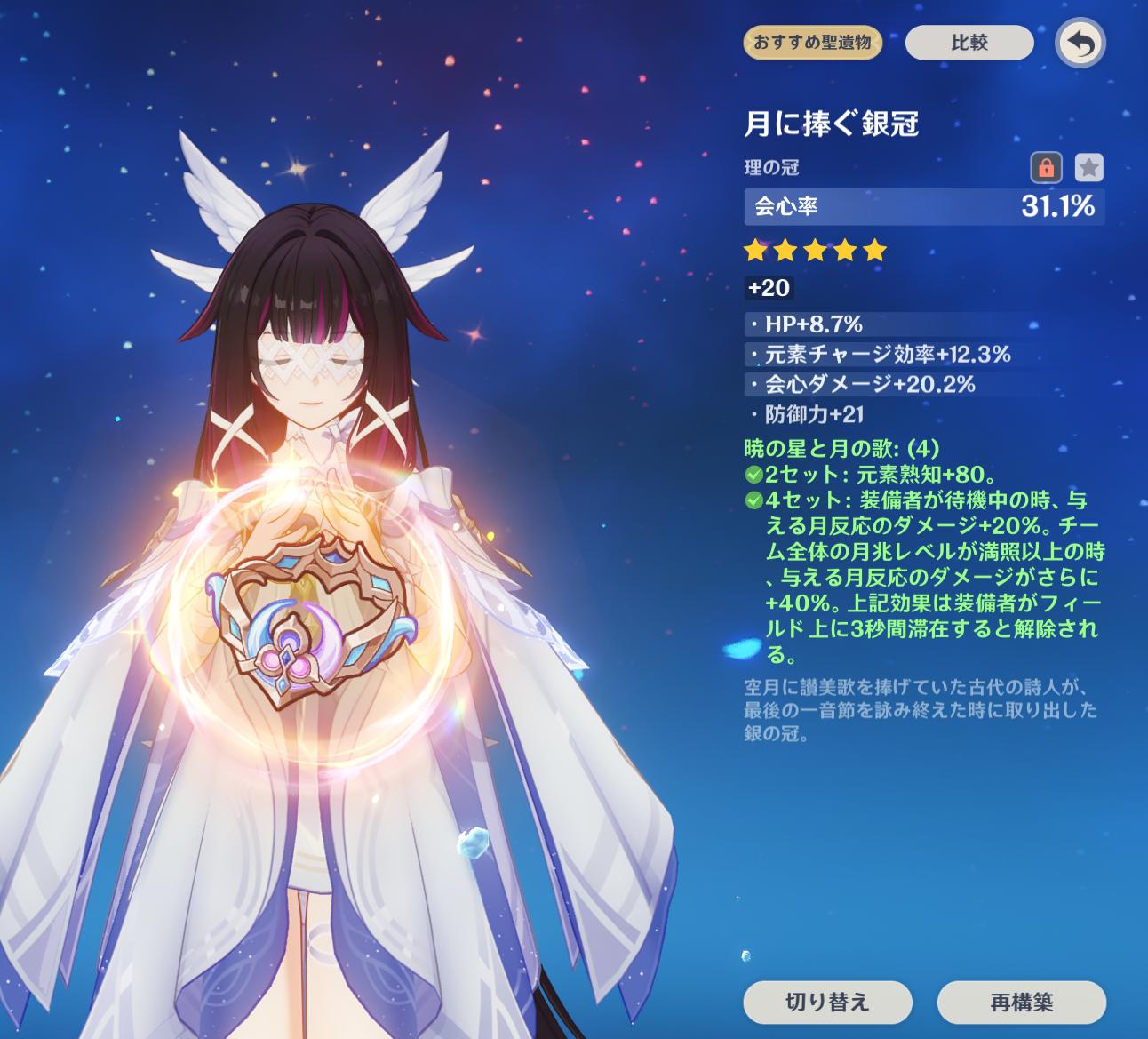 | … | 4026/03/13(金)23:06:06No.1410456086+シアターのために頑張ってガイアとレイラをレベル80まで持って行ったんだけどよぉ 聖遺物迷うぜぇ昔のキャラってどんな聖遺物つけてたのか後追い勢だから情報がないぜぇ |