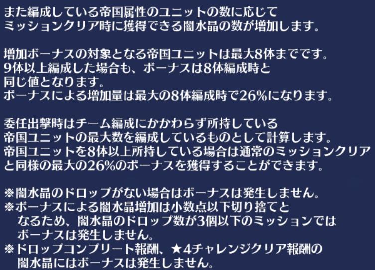 | … | 1326/03/14(土)05:17:26No.1410509278+>帝国大戦シリーズって帝国編成でクリアすると石のドロップボーナスいっぱいつくんじゃなかったの? |