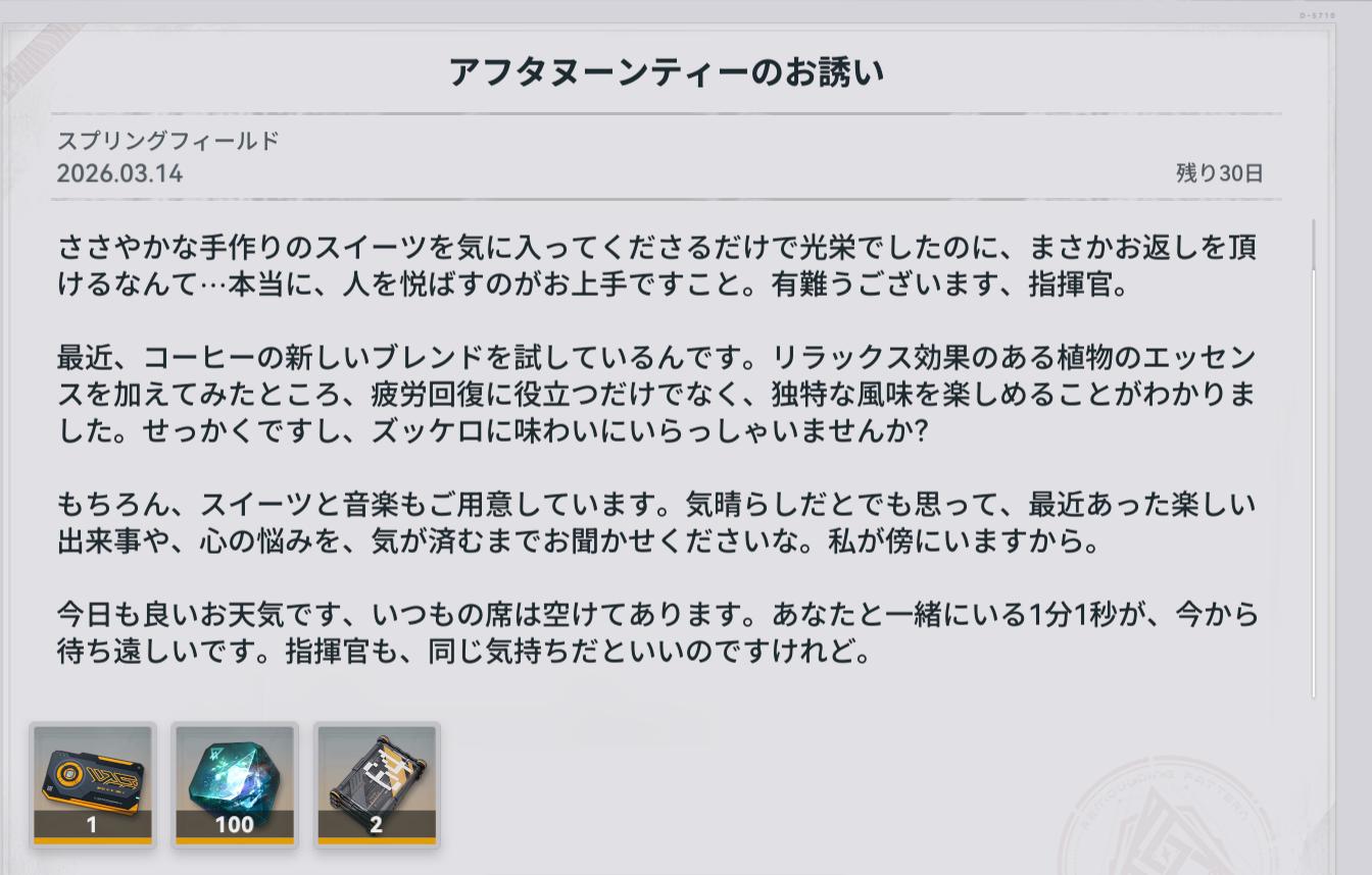 | … | 6026/03/14(土)07:55:31No.1410518313+>>よくわからんけどゲームのキャラクターに手紙を送らせるのは大陸の文化なんだろうか |