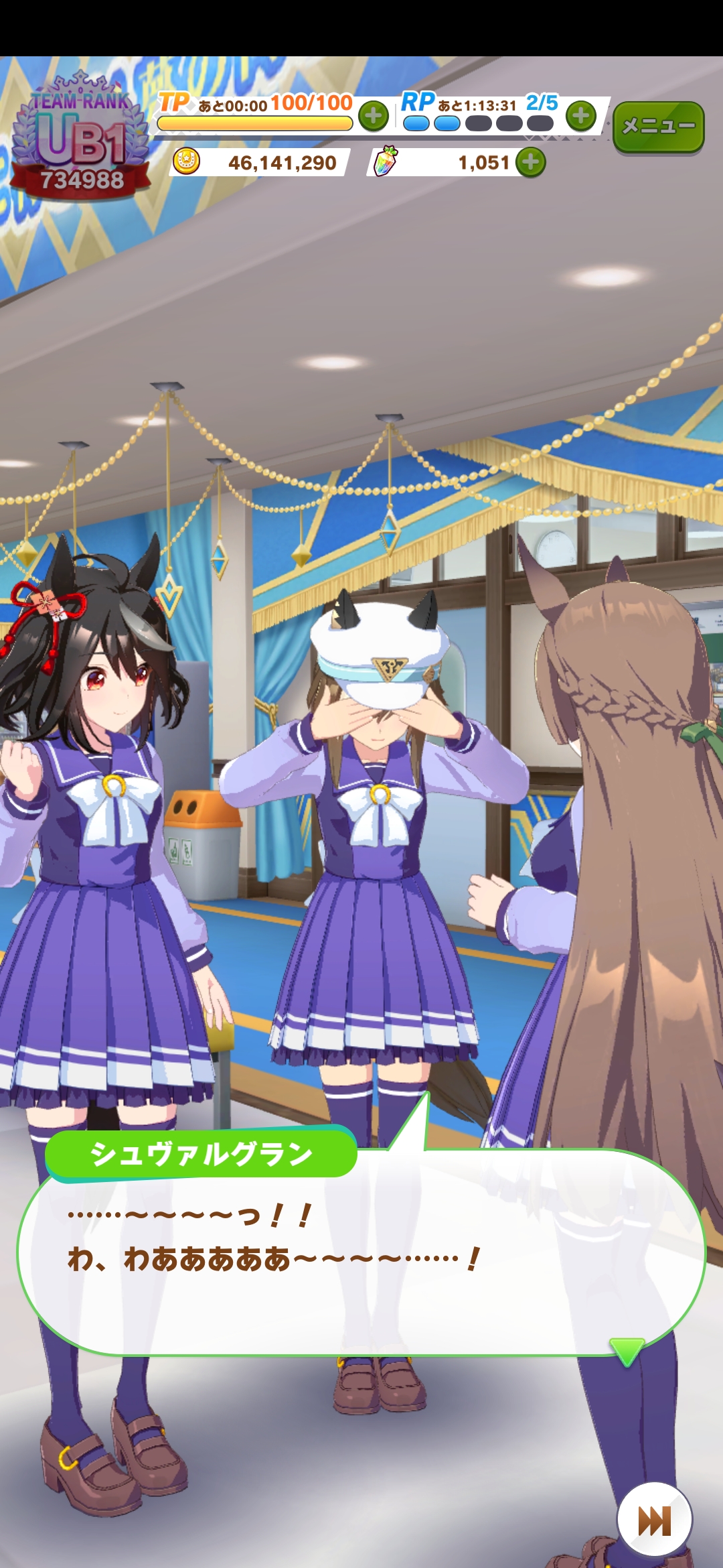 | … | 46726/03/14(土)12:19:18No.1410568516+>今回青で欲しいのってスピの次点はなにになるんだす? >スタミナあたりだすか? 根性が凹むから根性らしいですけどぶっちゃけなんでもいいらしいです |