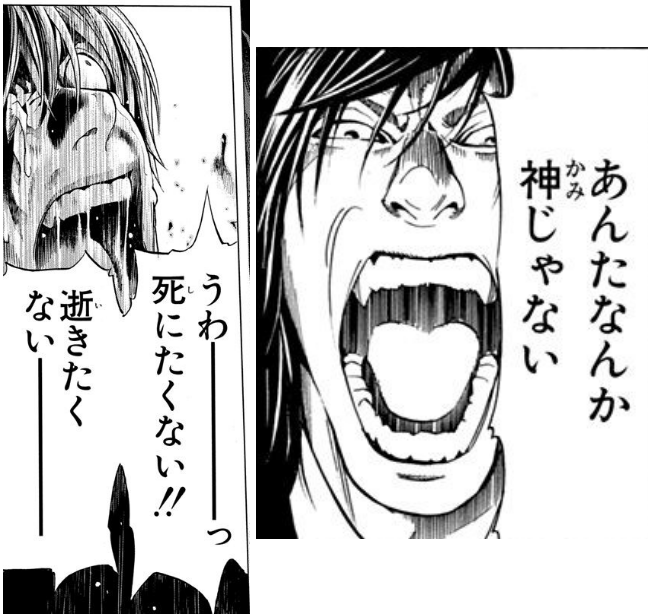 | … | 4126/03/14(土)10:34:01No.1410544675そうだねx5作中で散々殺しまくってきた奴が数秒後に迫った死に怯えて死にたくない逝きたくないって喚いて終わるってのが好き |