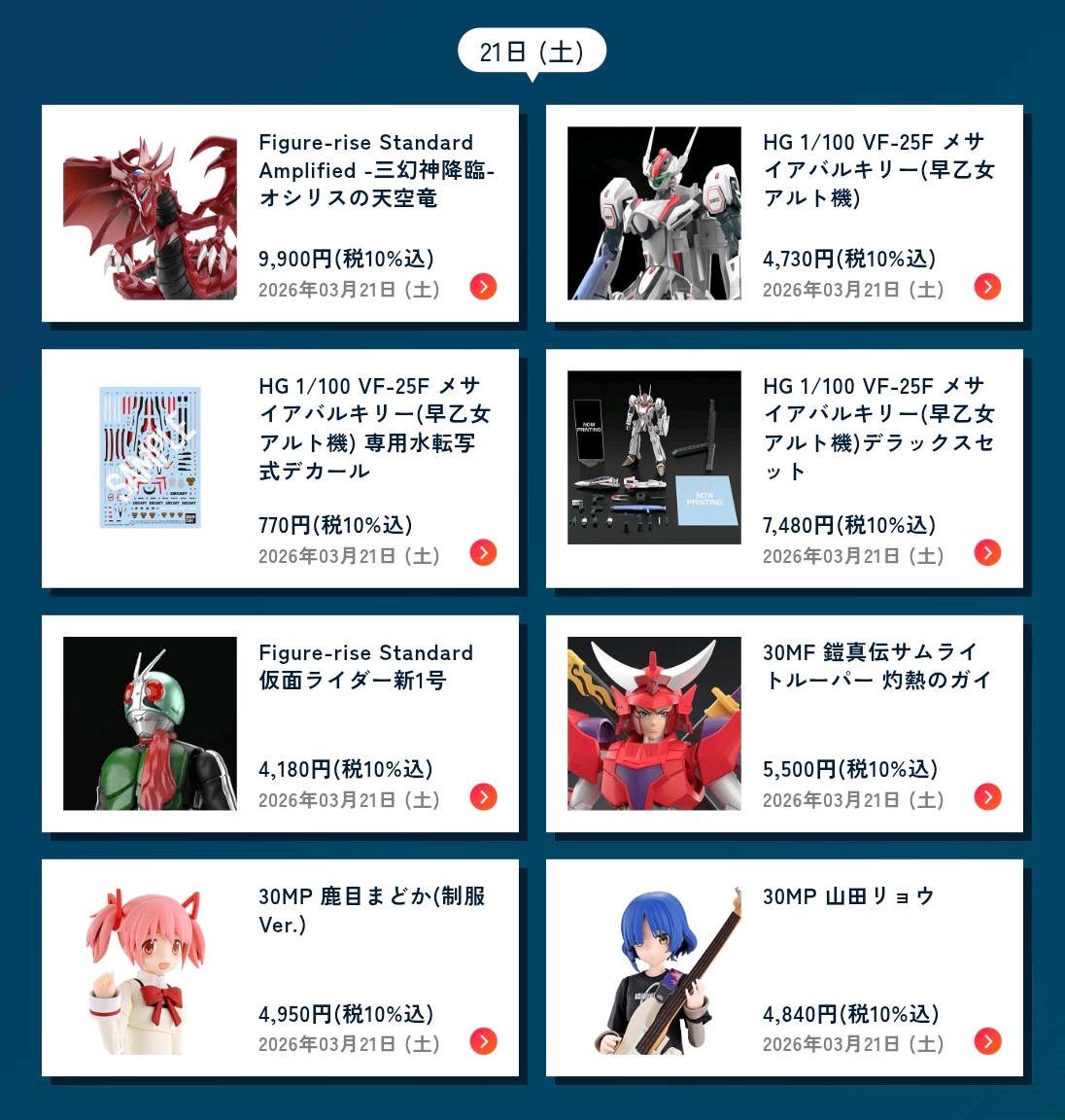 | … | 7026/03/14(土)10:53:13No.1410548165+>トイザらス7時前には始まってたんだがタイミングわかんないすぎるな わかんないからこそのまだ買えるなのかもしれん ガリュードみたいな素体も予約できるし |