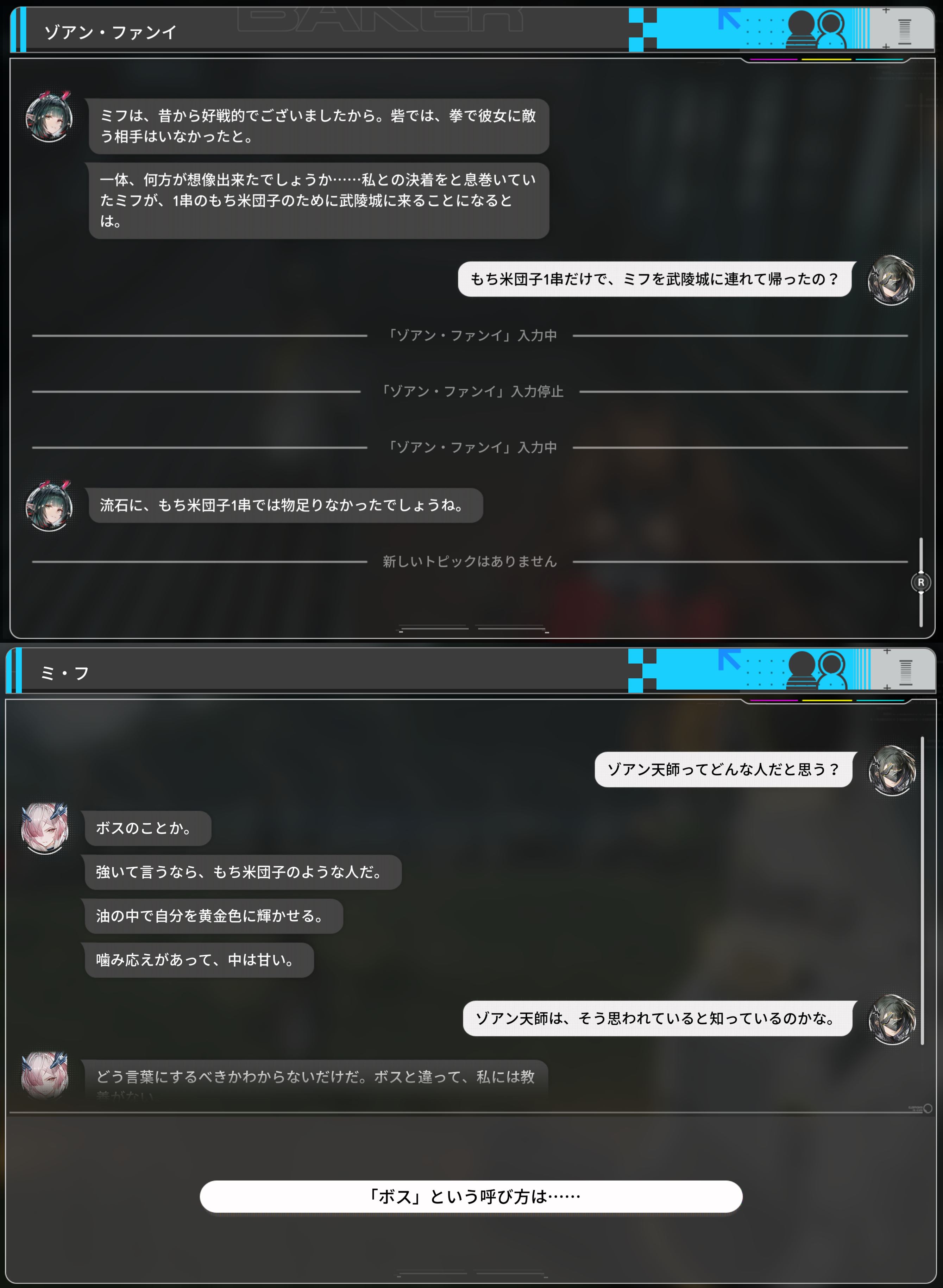 | … | 7826/03/14(土)14:30:05 ID:CMjeSSjoNo.1410604562そうだねx1>細かい話はある程度追わないといけないとはいえ兄貴の私室で読まされる武陵の報告書で「武陵による裂け目の抑制失敗→砦が生き延びるために物資襲撃→その時に天師の雷法で親父死亡→関係断絶」についてはまとめてるし全く分からないってのは読み飛ばしてないか?ってのは思う |