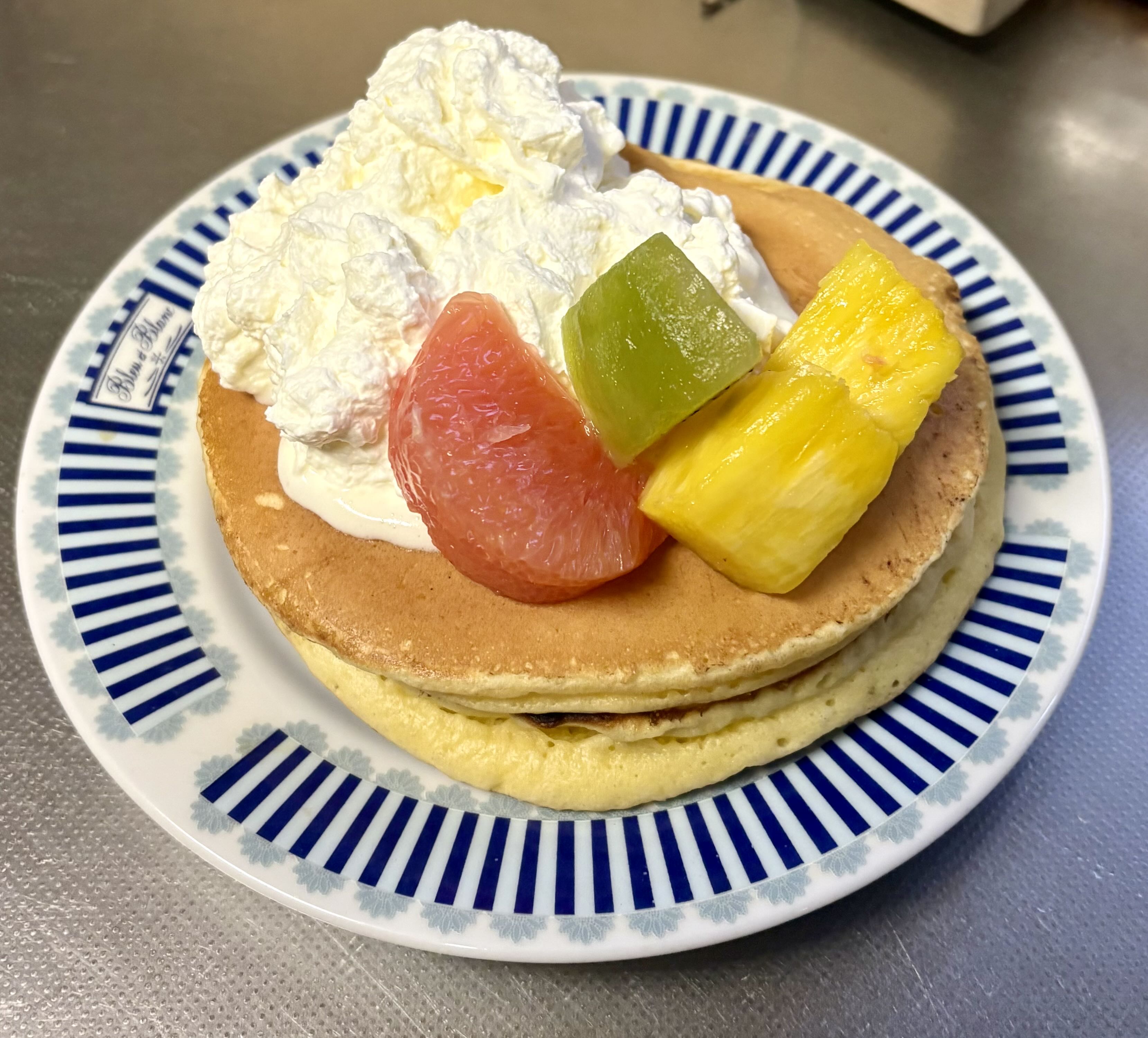 | … | 126/03/14(土)13:06:04No.1410581238そうだねx1極もちホットケーキ(2枚)にたっぷりの生クリーム(無糖)フルーツのせです |