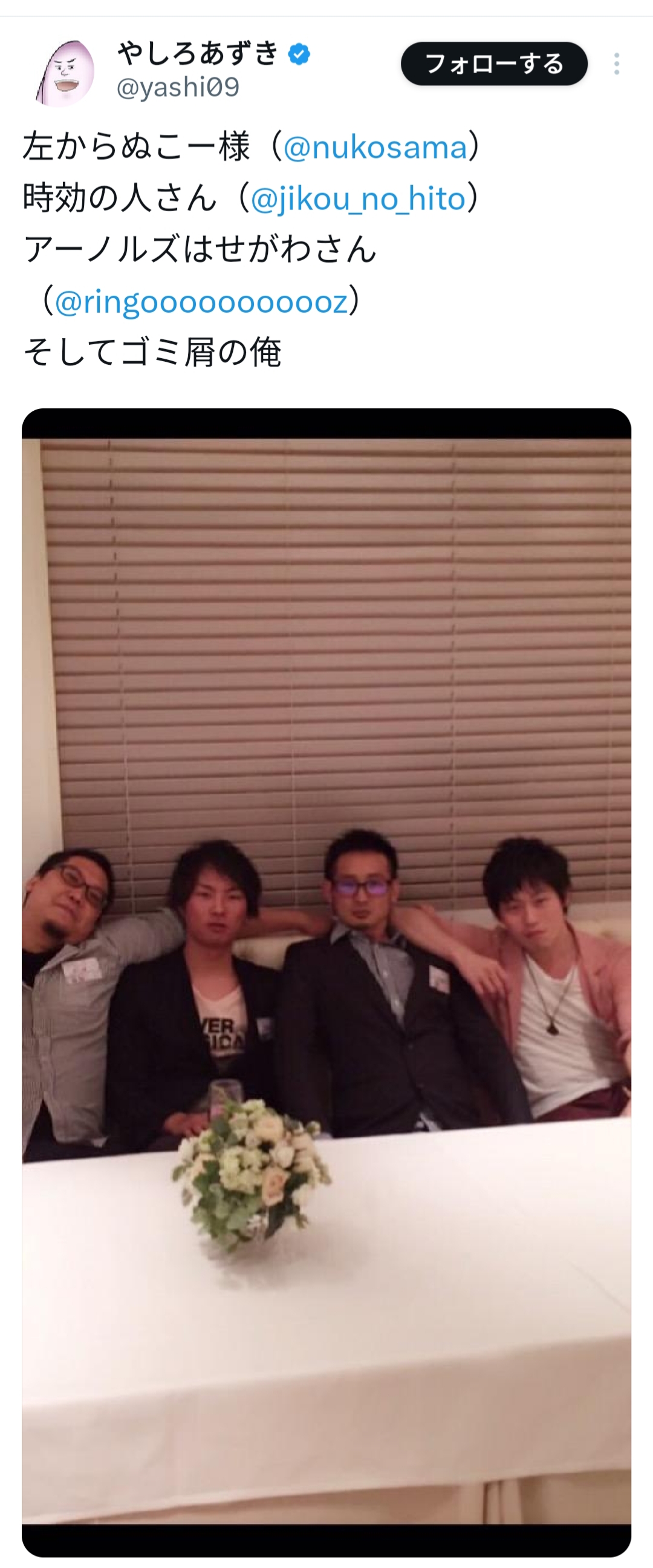 | … | 29426/03/14(土)20:33:05No.1410714171そうだねx3類は友を呼ぶってこういうのなんだなぁってなるメンツ |