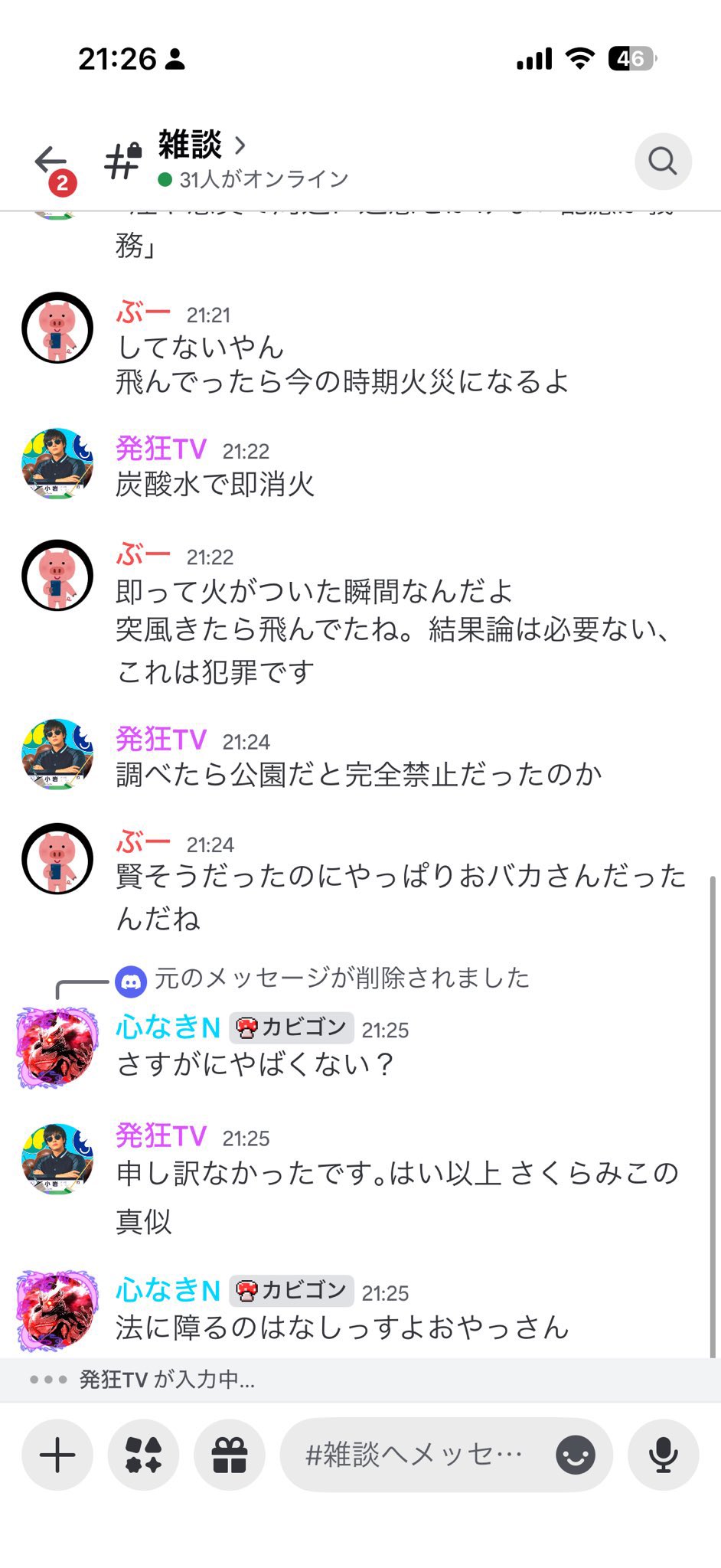 公園で野焼きは犯罪だと指摘されて慌てて削除