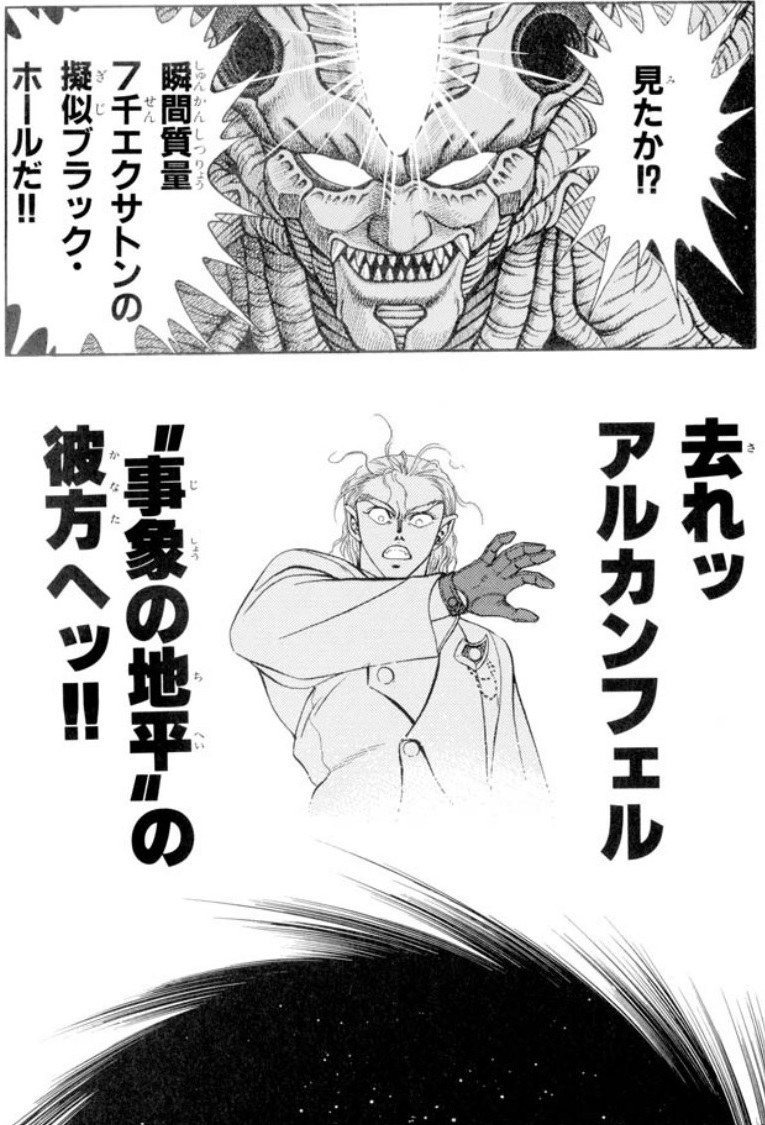 | … | 4826/03/15(日)12:36:54No.1410941987+Event Horizonの直訳で事象の地平線 |