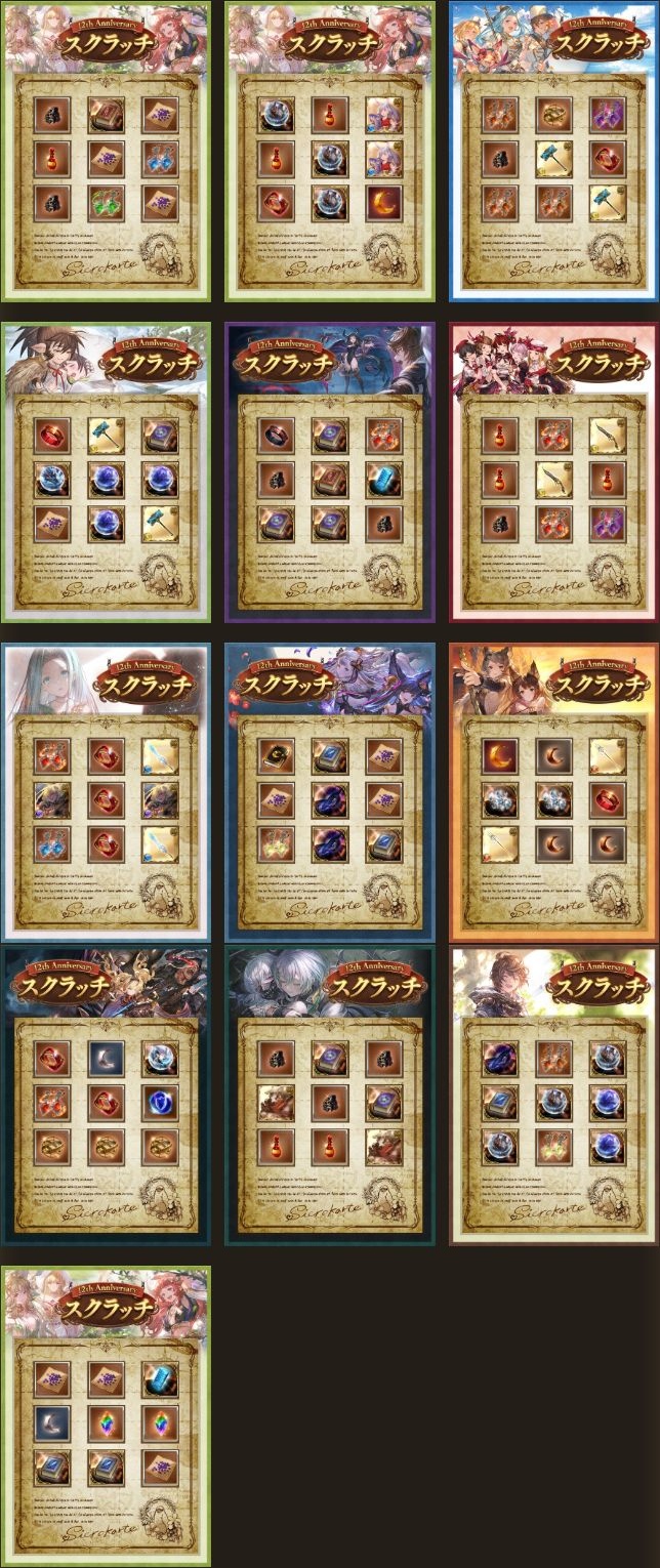 | … | 17526/03/15(日)13:27:07No.1410960695+>スクラッチ最終日の「とあるアイテム」に期待するんだよ ふふ!12周年にふさわしい武器といえば…なんだかわかりますか! |
