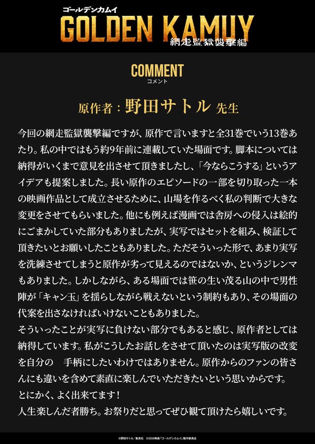 | … | 5826/03/15(日)14:15:47No.1410977272そうだねx1>樺太編楽しみだけどあの旅に無駄なことなんて1つも無かったから取捨選択が難しそうだね |