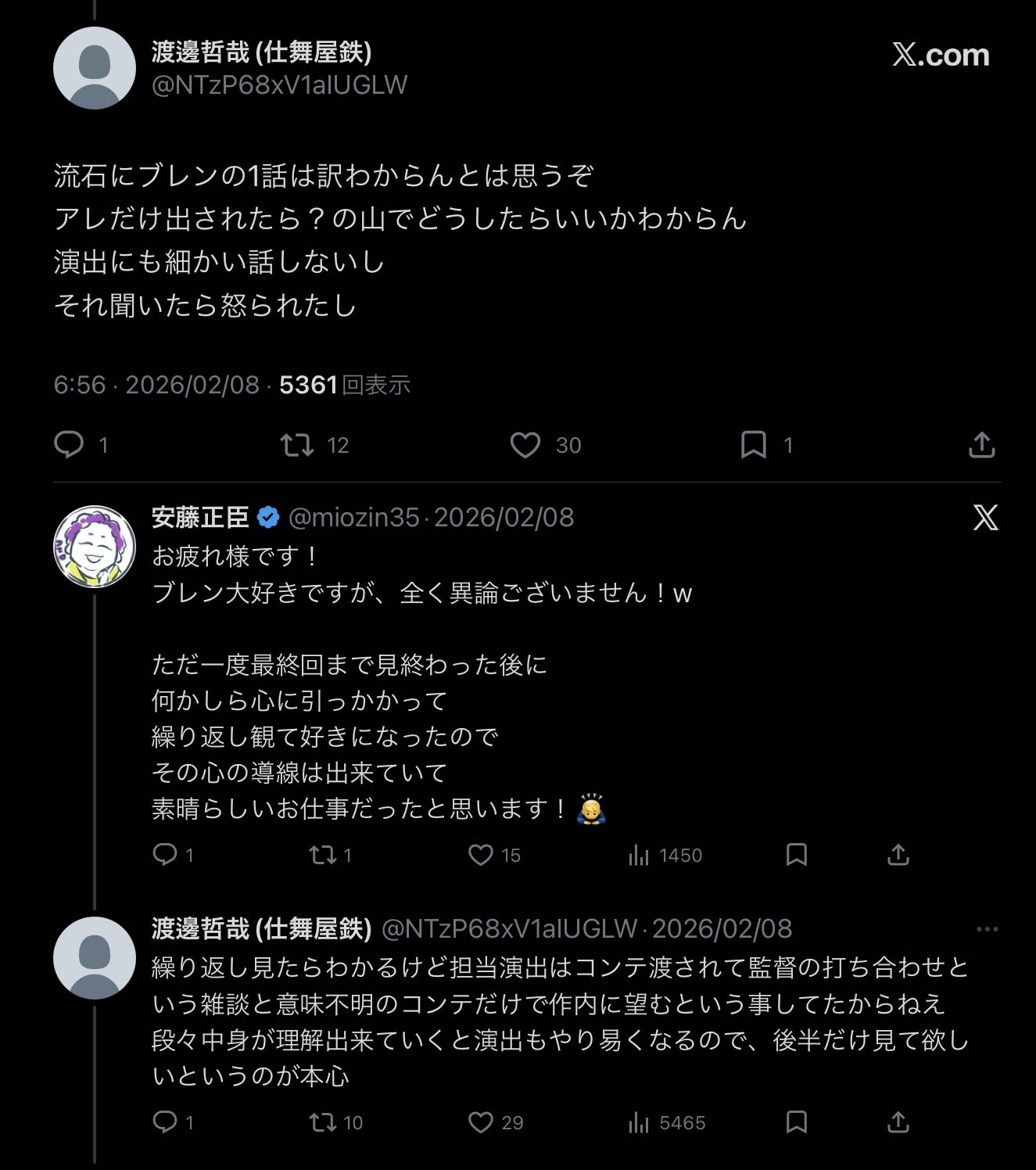 | … | 3926/03/15(日)16:48:57No.1411021895+まあブレンは演出家も「わけわかんねえ…」と思いながら仕事してたらしいから |