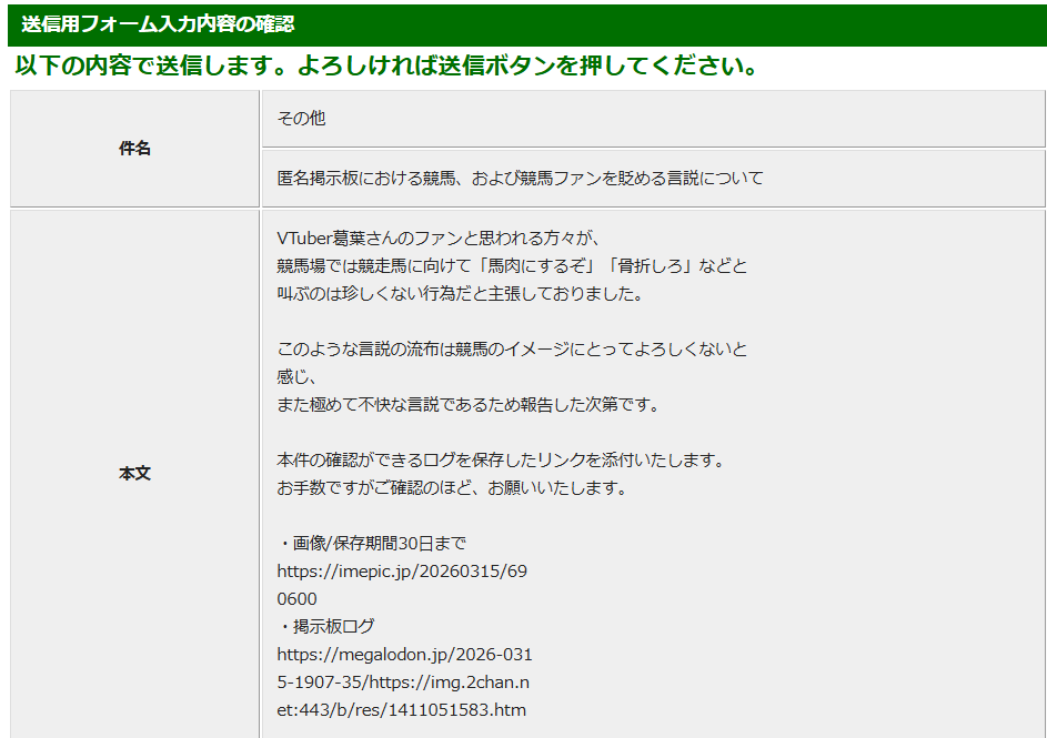 それを擁護するために競馬ファンを貶めたVのファンを通報しよう