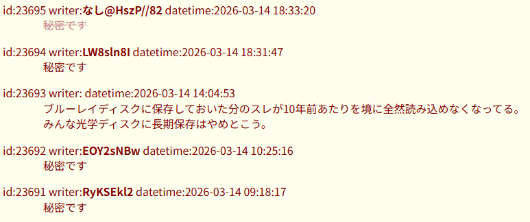 | … | 1026/03/15(日)20:05:34No.1411090656+東日本大震災のログは残ってた |