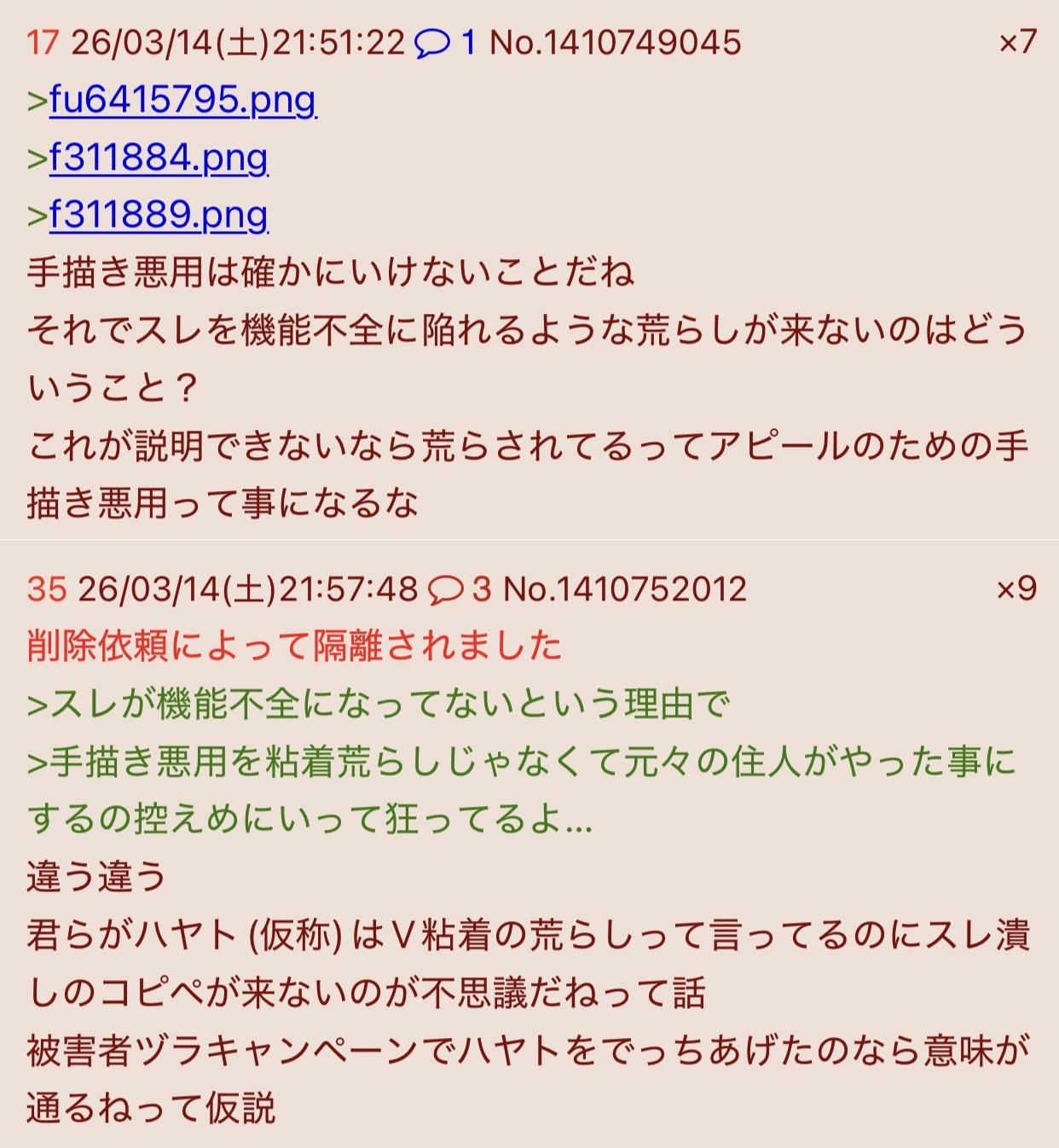 | … | 2026/03/15(日)19:45:43No.1411082518そうだねx6どんだけハヤト呼ばわりされたくないんだよ |