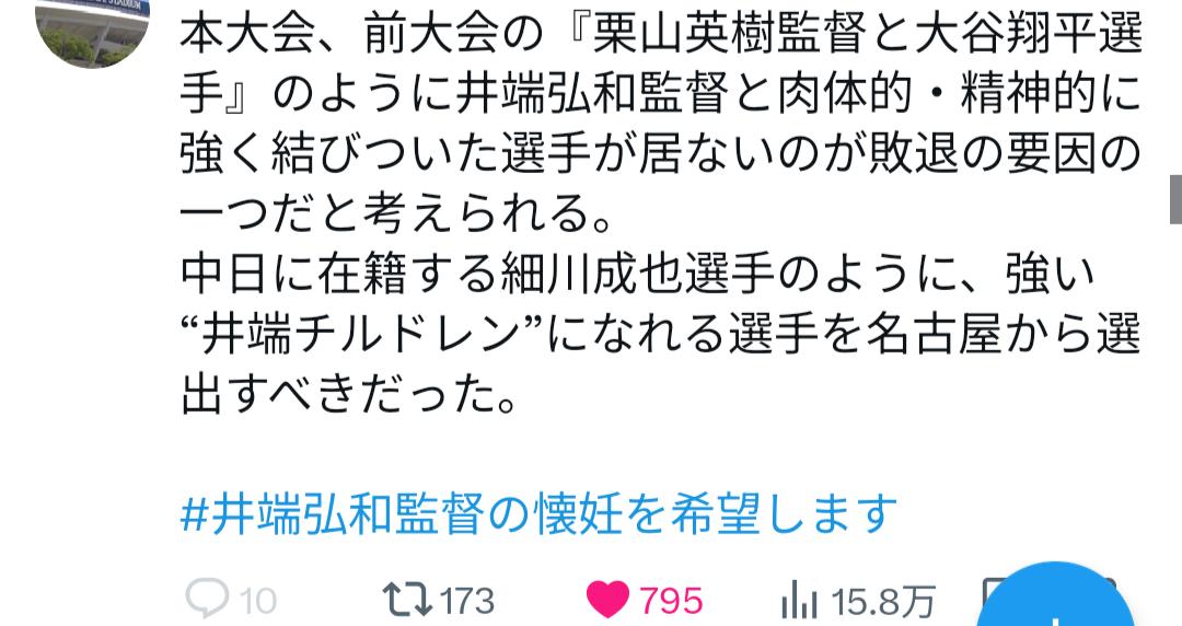 | … | 60726/03/15(日)21:22:36No.1411122770そうだねx2>プレミア12で台湾に負けた時にもうちょっと危機感もっとけば良かった |