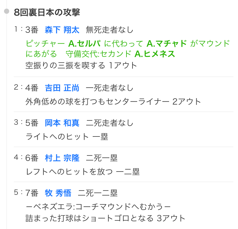 | … | 7626/03/15(日)20:28:26No.1411100976+>今日の試合に関しては岡本は得点圏で回ってこなかったけど2出塁だから俺は活躍したと思ってるよ |
