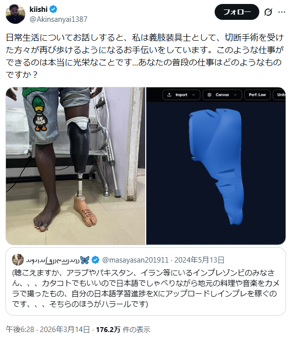 | … | 1926/03/15(日)21:00:59No.1411114598そうだねx2うちの国には指が飛んでる人が多いから義肢装具士やってるよ |