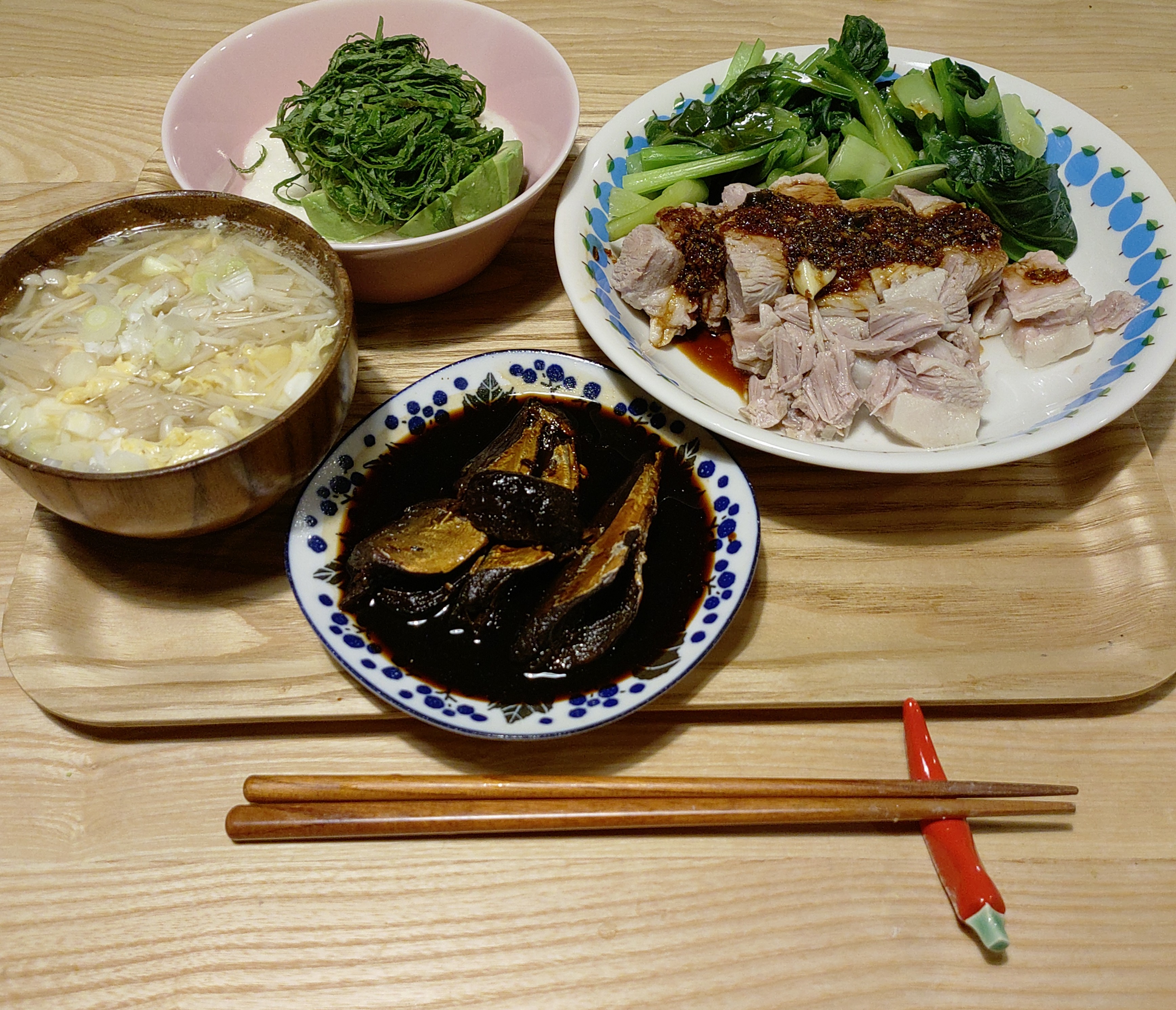 エノキのかき玉汁(煮豚の茹で汁利用)