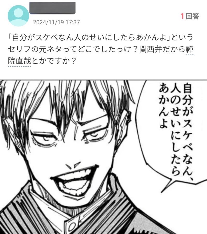| … | 5126/03/15(日)21:31:50No.1411126174そうだねx6>禪院直哉への深刻な風評被害 |