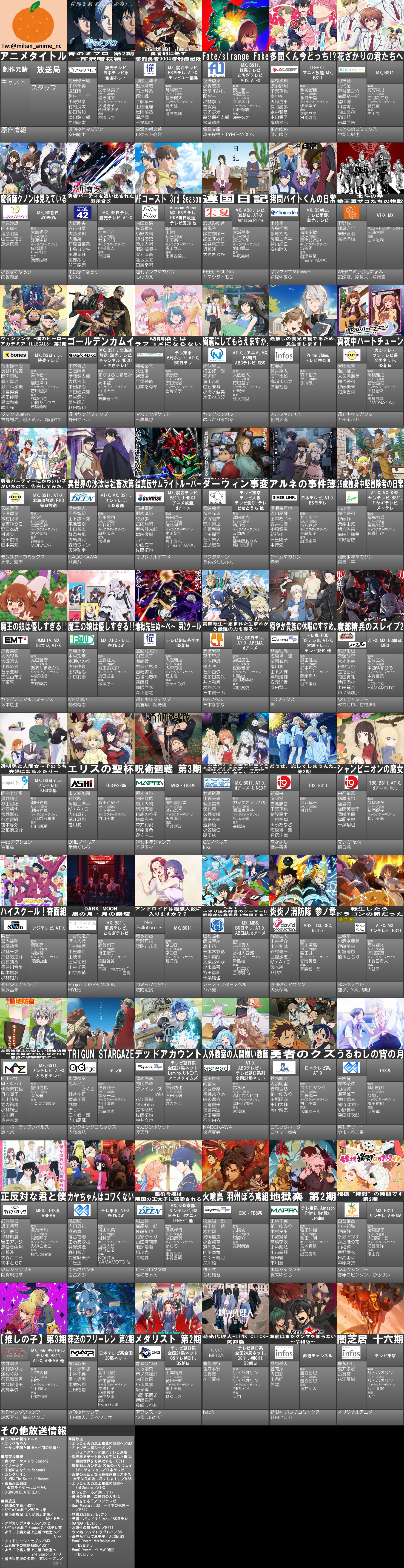 | … | 326/03/15(日)21:58:05No.1411135635+来期アニメ表はまだ出てへんの? |