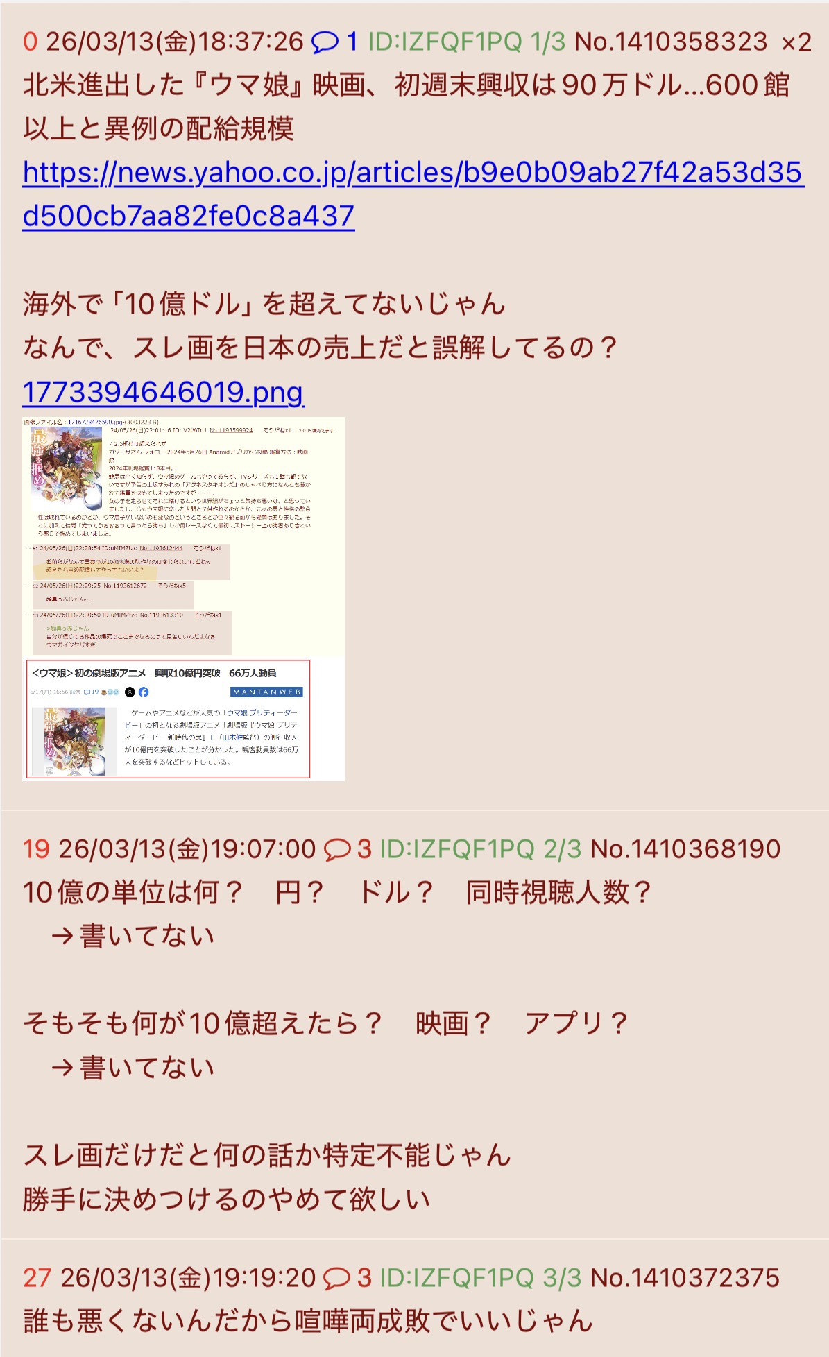 スレ画の人は「アメリカ上映時の初週売上10億ドル」を予想してたと思う