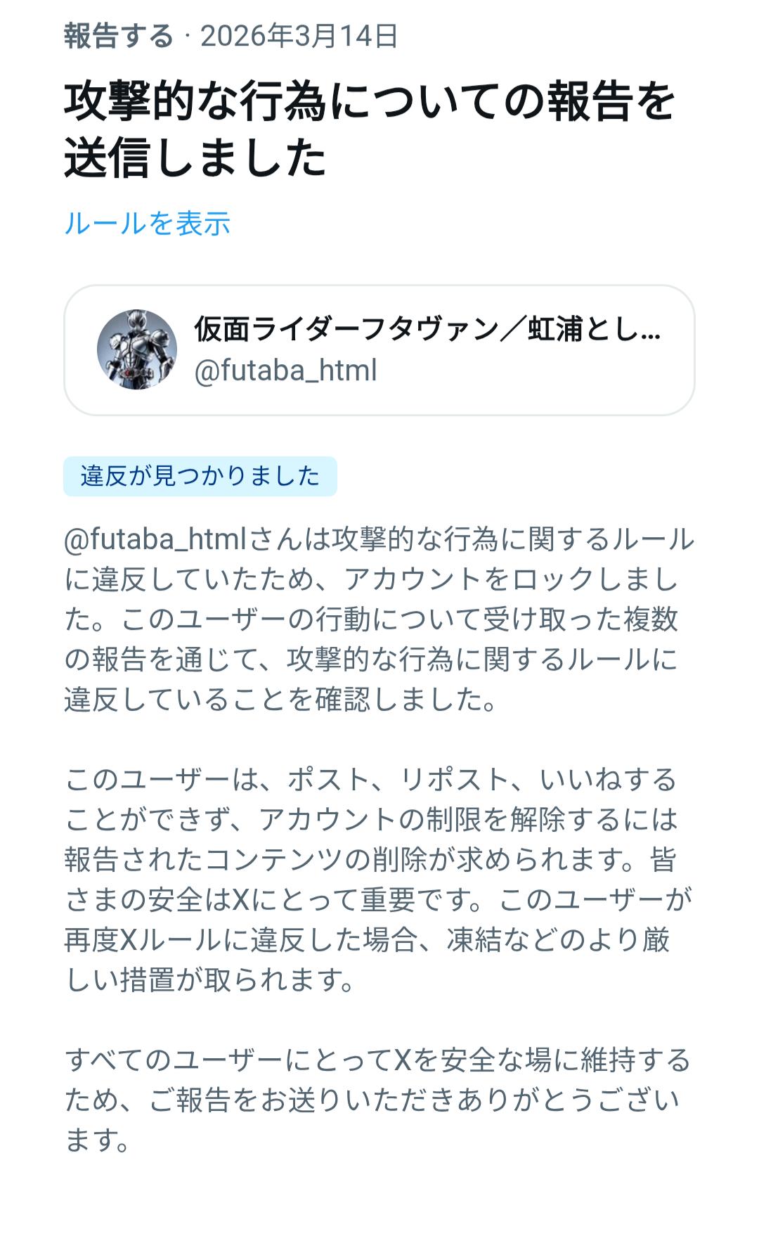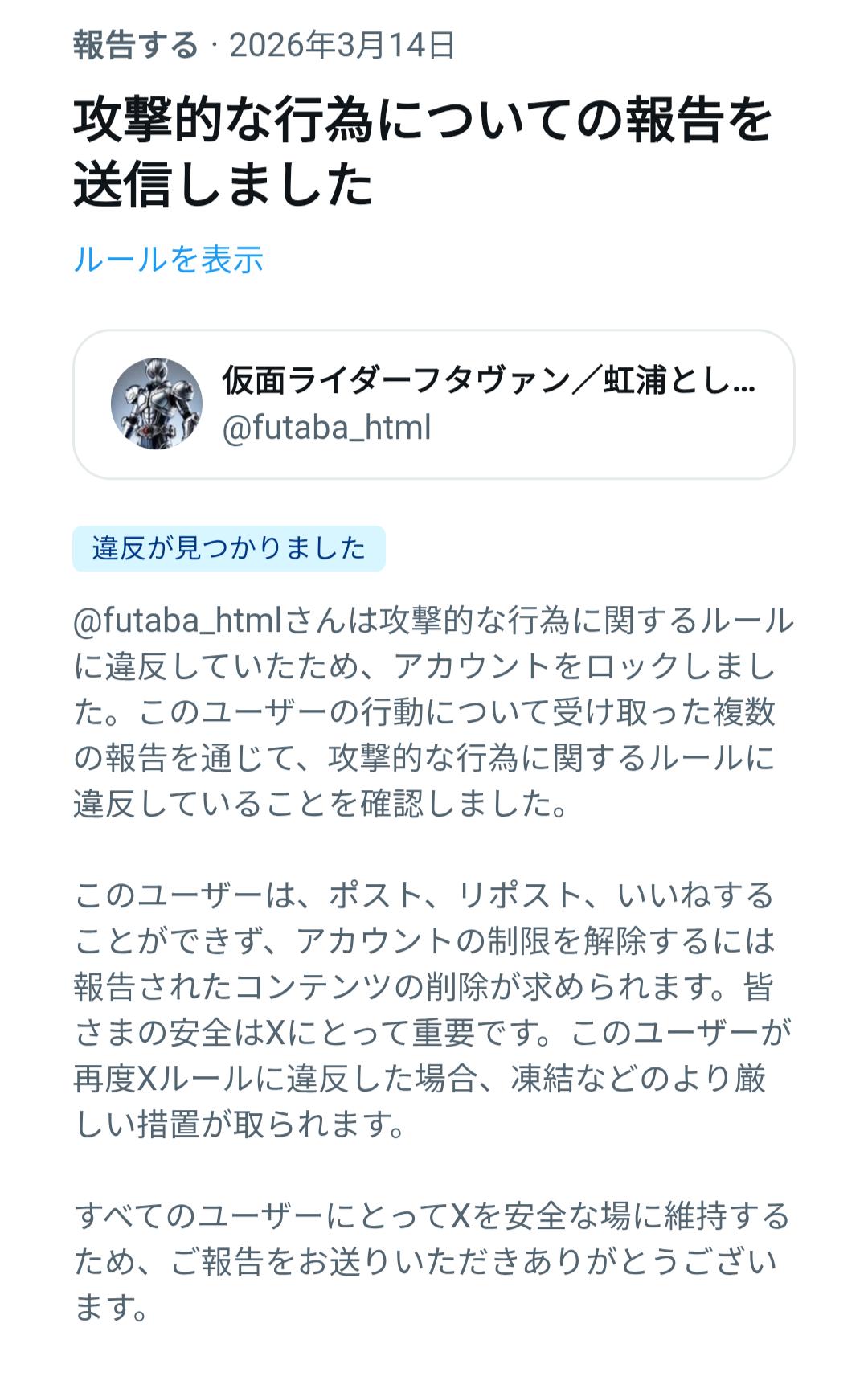 | … | 7026/03/15(日)23:15:40No.1411161856そうだねx5凍結されたやつが新しいアカウント作るのって規約違反なんすよ |