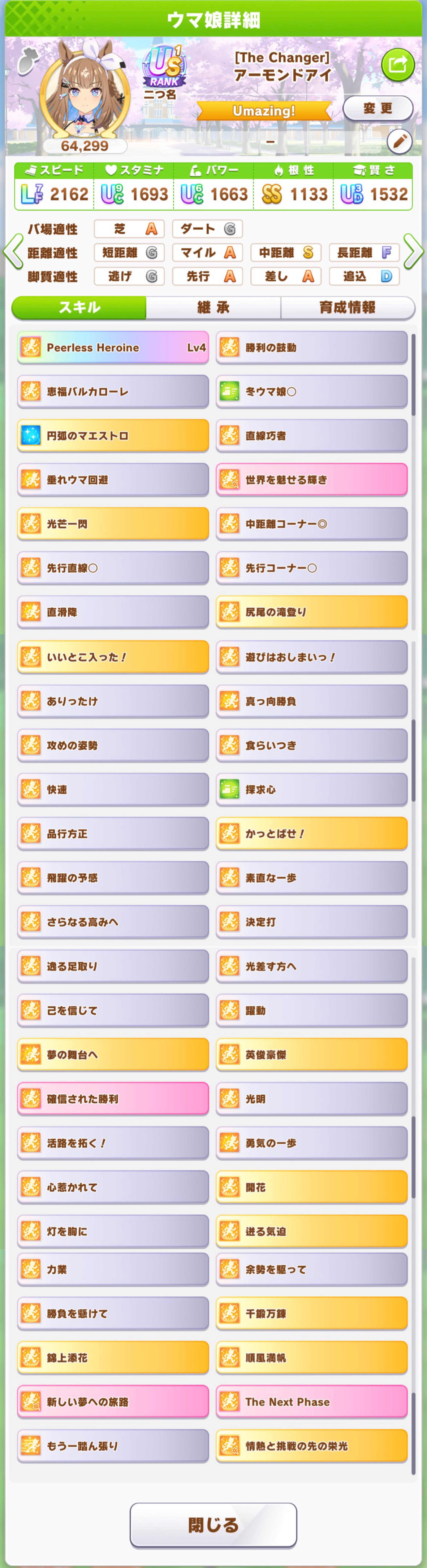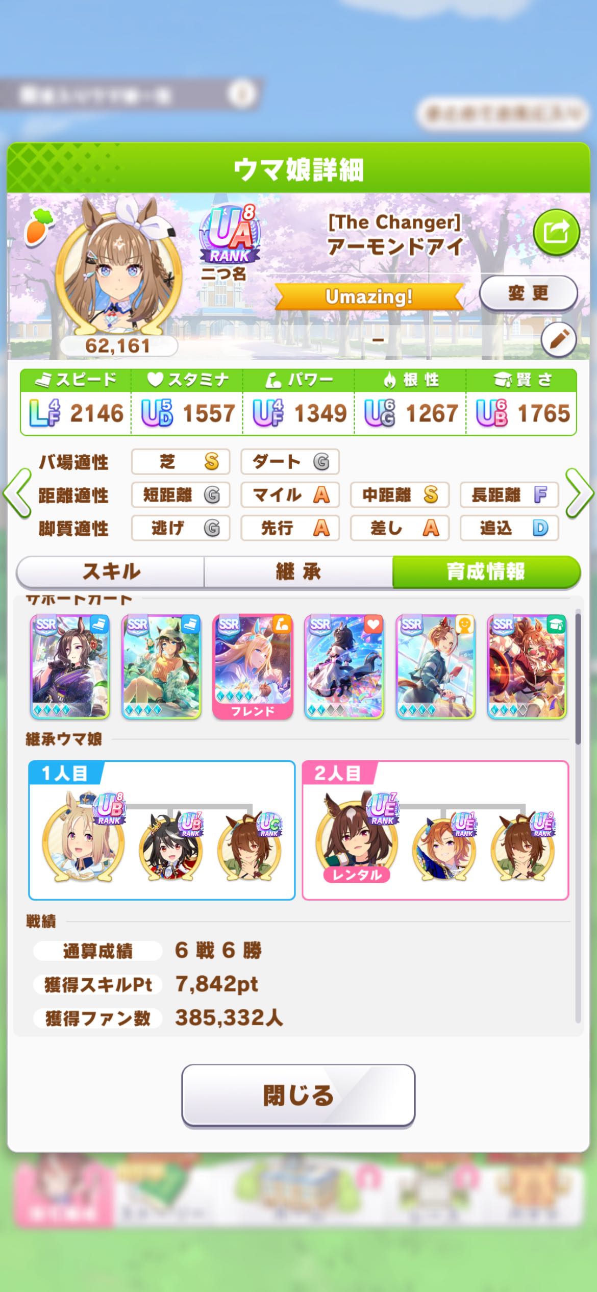 | … | 7726/03/16(月)12:45:55No.1411273406+長年使い回してきた賢さ1200程度のデバフ役を1800にして中盤白スキルも持たせたら体感いい感じなったのだ |