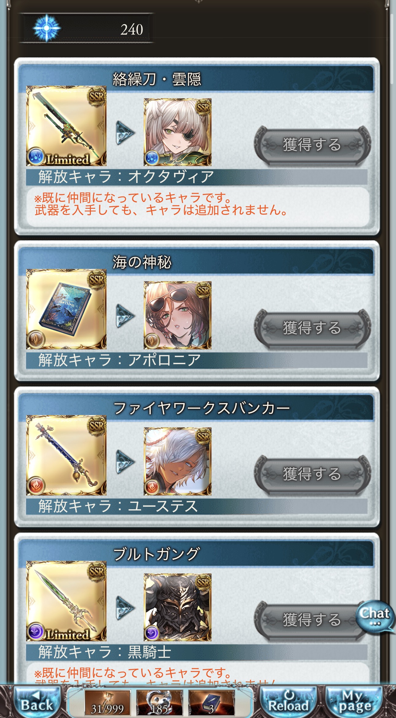 | … | 90126/03/16(月)19:16:42No.1411367233+本当に6%なんだよ!?120連で虹が!ふたつ!ふたつだけ!勿論恒常武器のかぶり! 出るとこ出たくなるんだよ水着エウロペフェス(150連虹000)くらいの悪夢なんだよ |