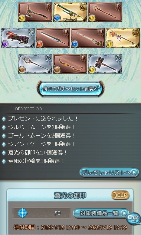 | … | 3026/03/16(月)18:50:09No.1411357749+>マクタンマカル自発したらマジで人っ子一人こない… >実装したばっかり+半額+ドロップUPでこれってヤバいんじゃ 今週始まったばかりで皆古戦場に向けて水AF掘りに切り替えただけよ |