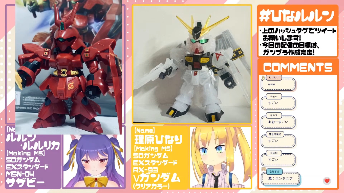 【ガンプラコラボ #ひなルルン 】ひなルルンガンプラ配信~ SDガンダム EXスタンダード νガンダム / サザビー~【理原ひなり】【ルルン・ルルリカ】