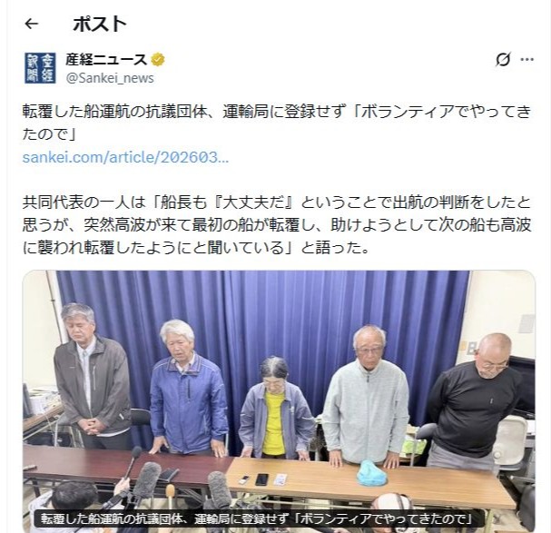 | … | 6326/03/17(火)00:20:18No.1411486011そうだねx2>活動家の隠れ蓑のお船だったのかどうか |