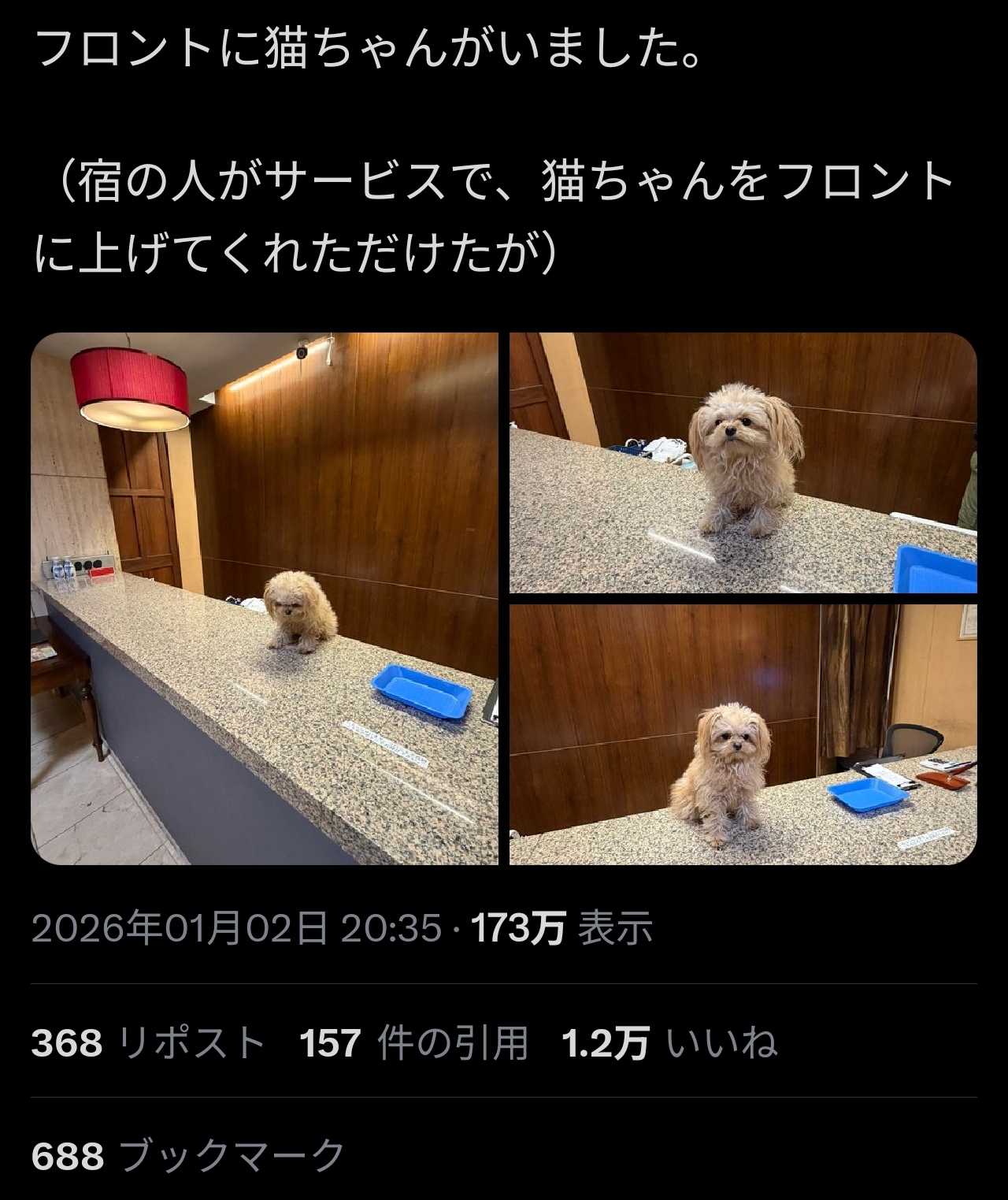 | … | 526/03/17(火)00:10:00No.1411482946+本当に猫ちゃん? |